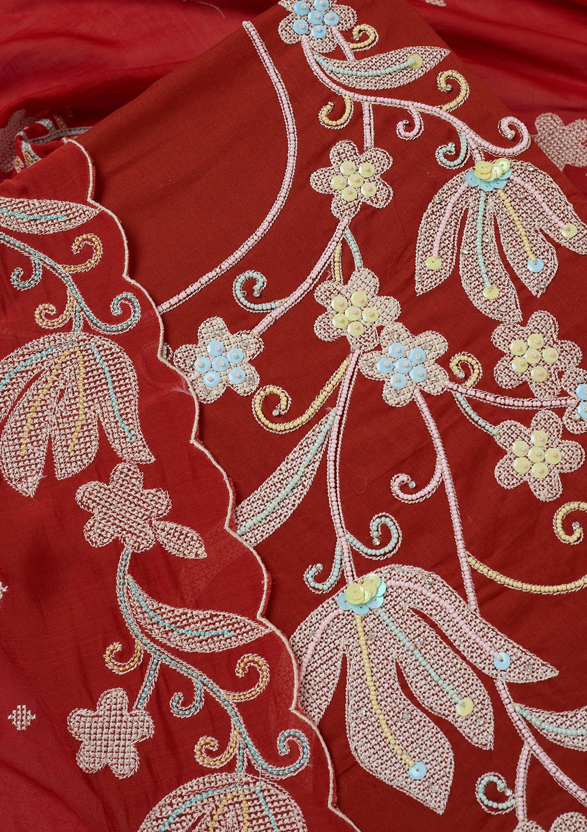 Rust Threadwork Cotton Unstitched Salwar Suit