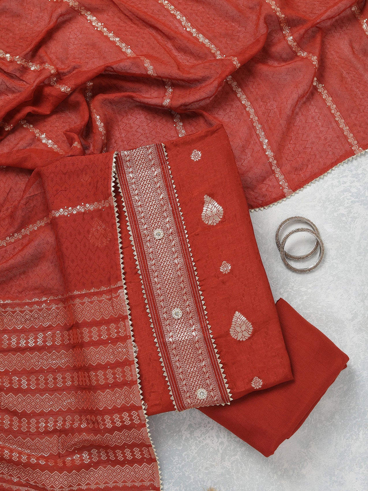 Rust Zariwork (Gold) Dola Silk Unstitched Salwar Suit