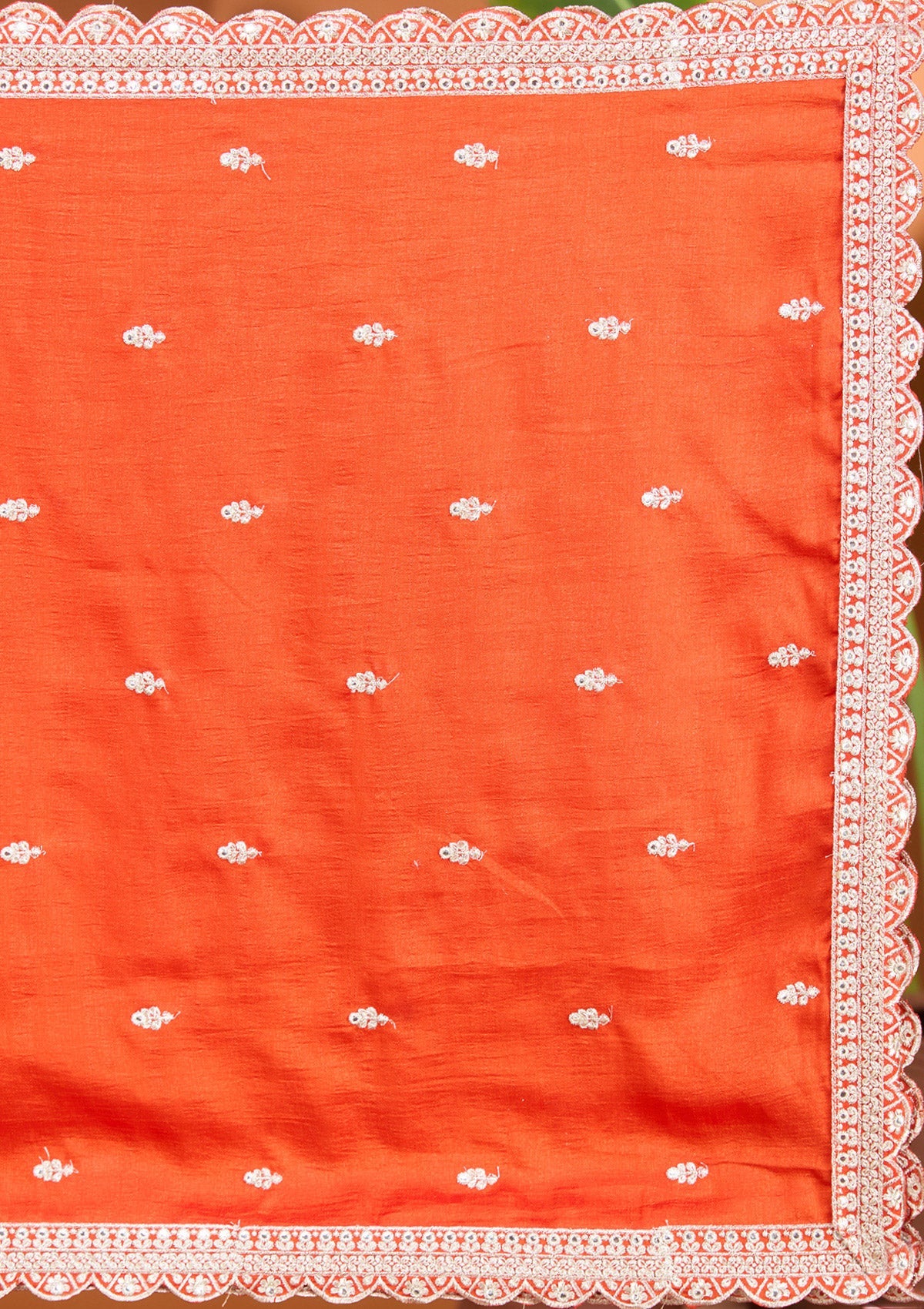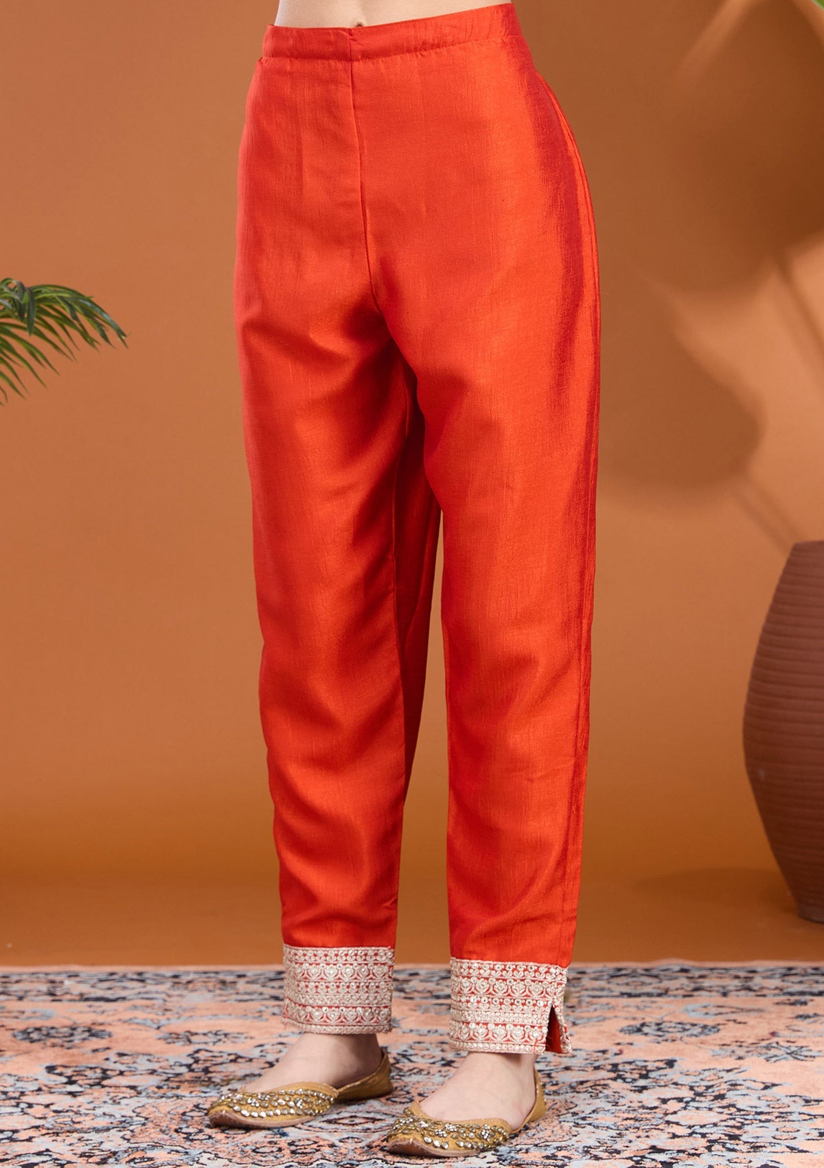Rust Salwar Suit in Soft Raw Silk fabric. The Salwar Suit is embellished with Zariwork (Gold) embroidery. Accompanied with a bottom and dupatta. Comes with the Koskii promise of premium quality.