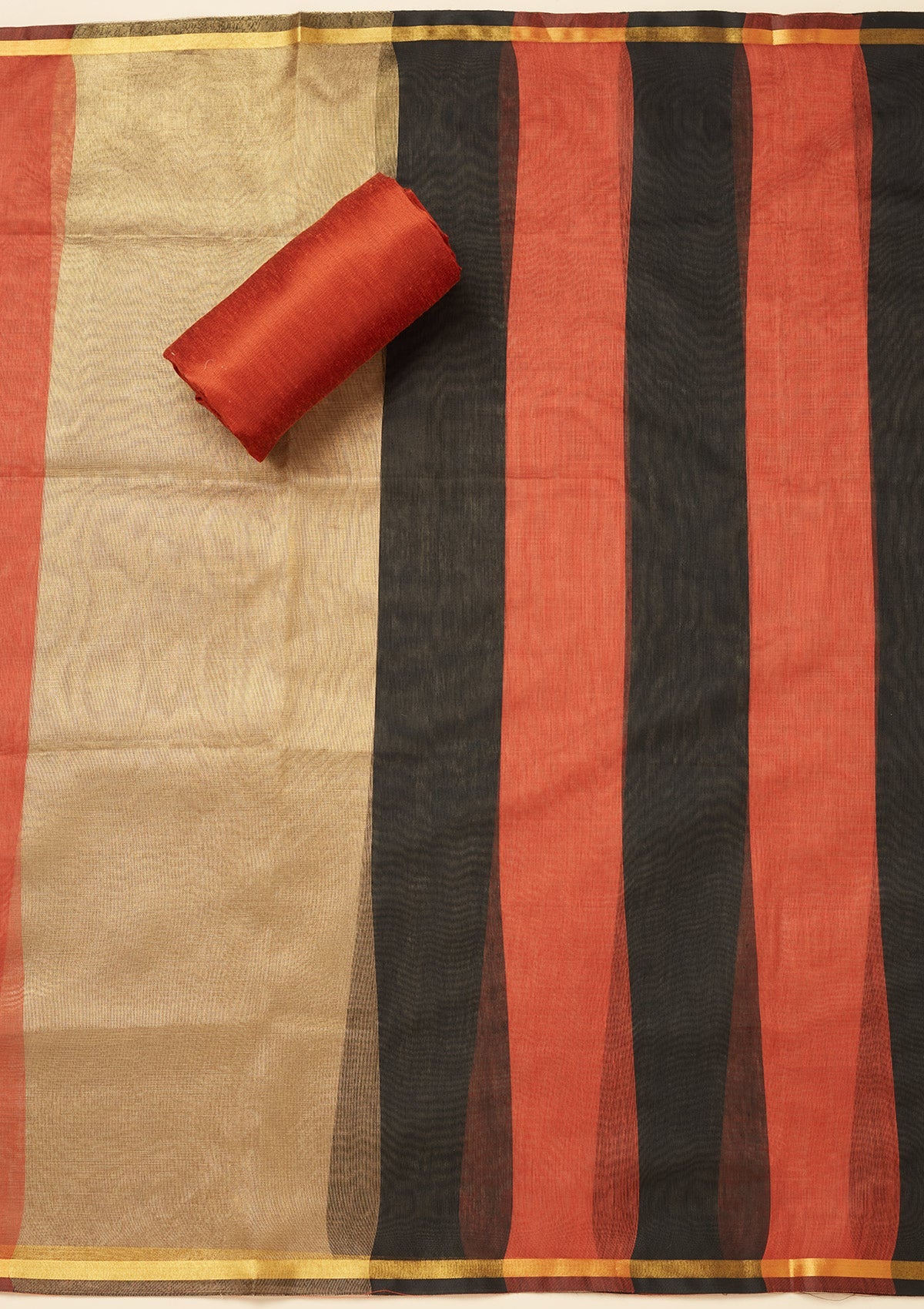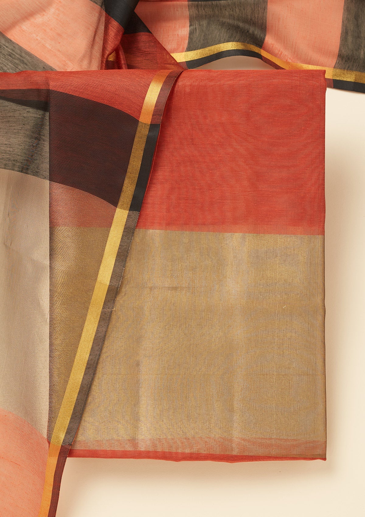 Rust Zariwork (Gold) Tissue Unstitched Salwar Suit