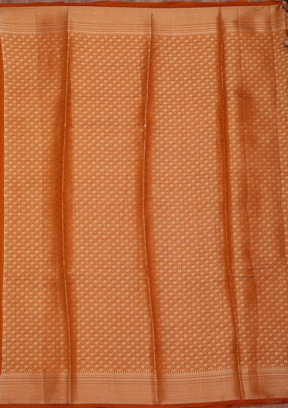 Rust Zariwork Pure Silk Saree