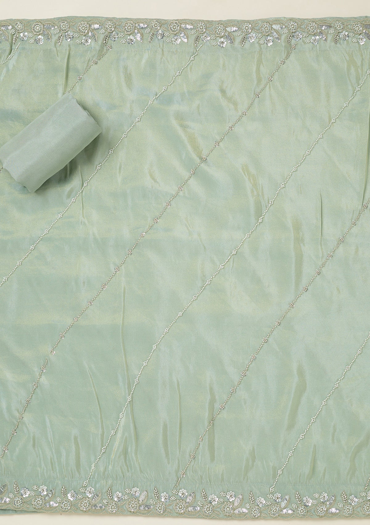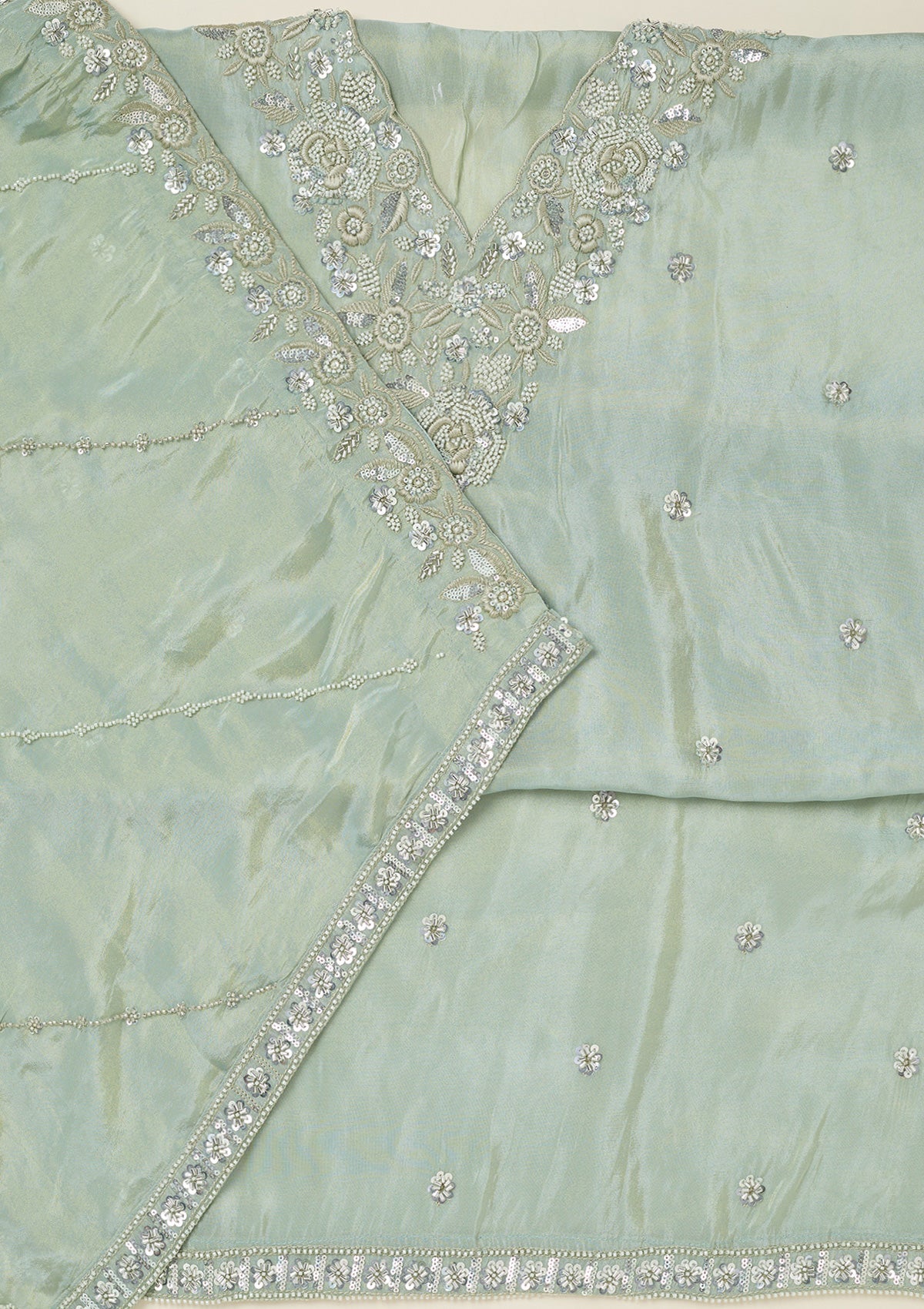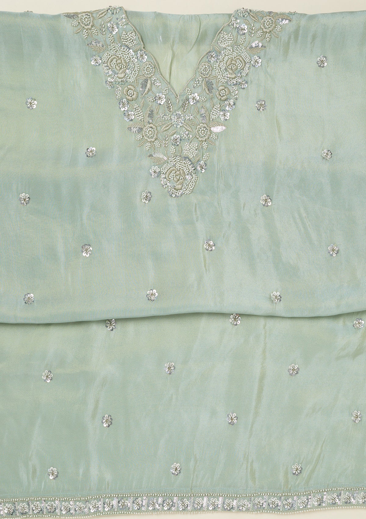 Sea Green Aariwork Semi Crepe Unstitched Salwar Suit