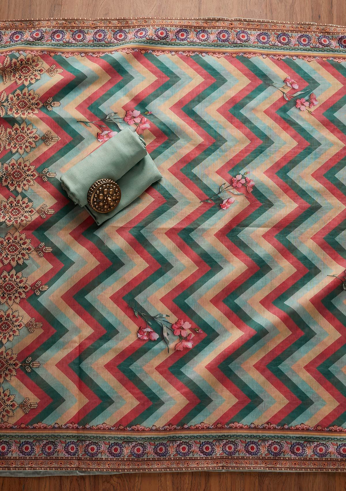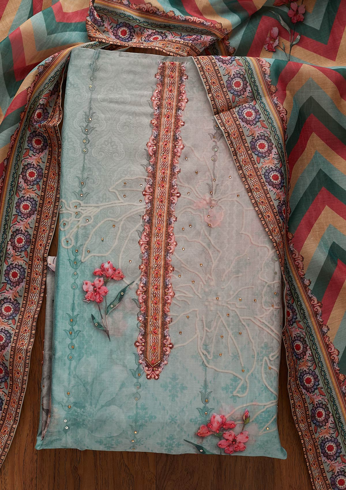 Sea Green Cutdana Chanderi Unstitched Salwar Suit