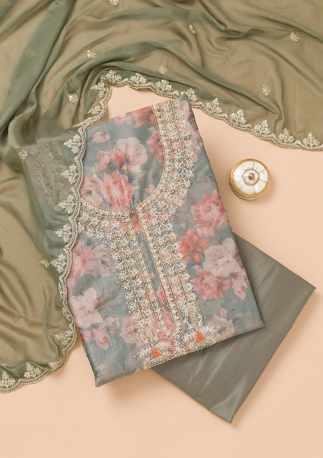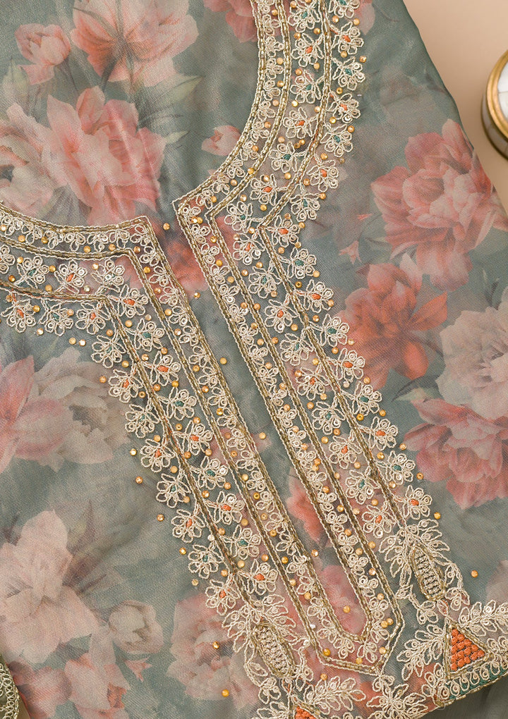 Sea Green Salwar Suit in Organza fabric. The Salwar Suit is embellished with Printed embroidery. Accompanied with a bottom and dupatta. Comes with the Koskii promise of premium quality.