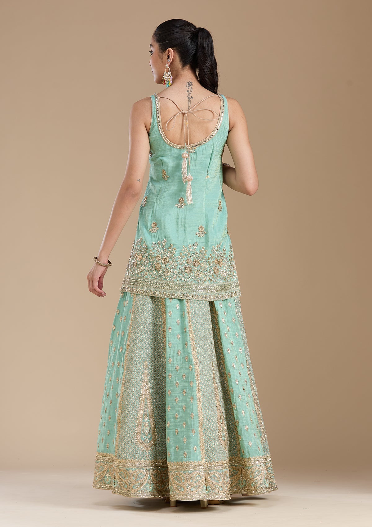 Sea Green Sequins Tissue Readymade Salwar Suit