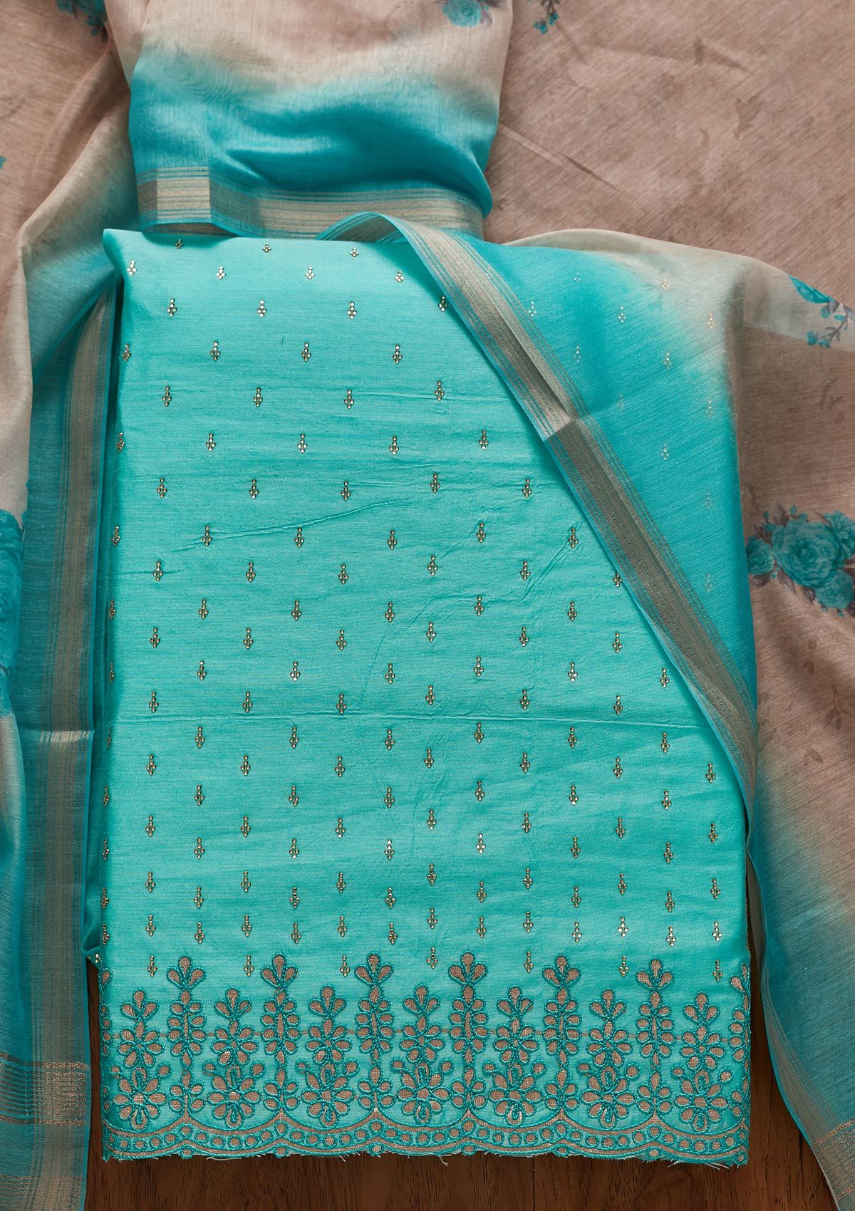 Sea Green Swarovski Chanderi Unstitched Salwar Suit