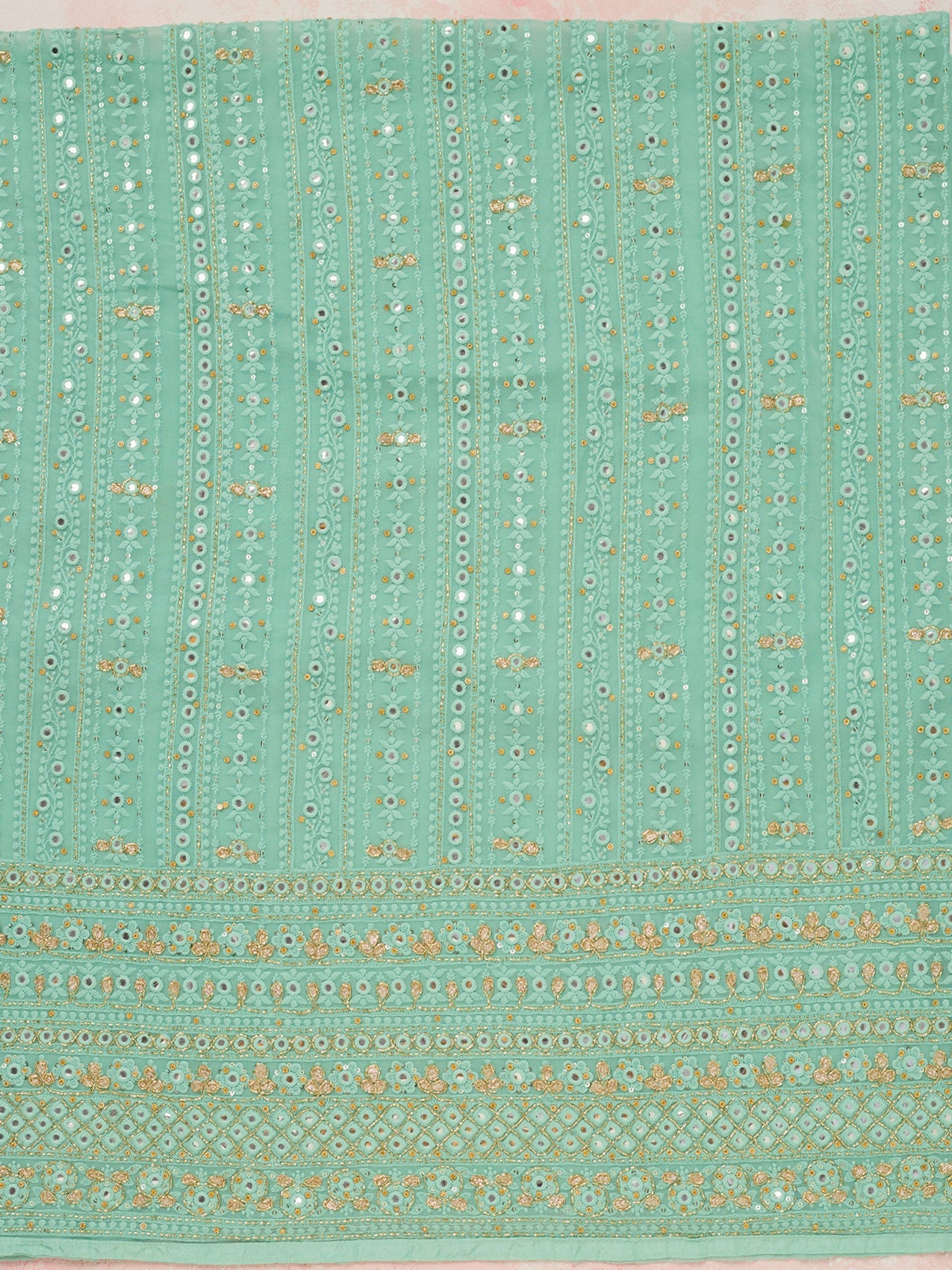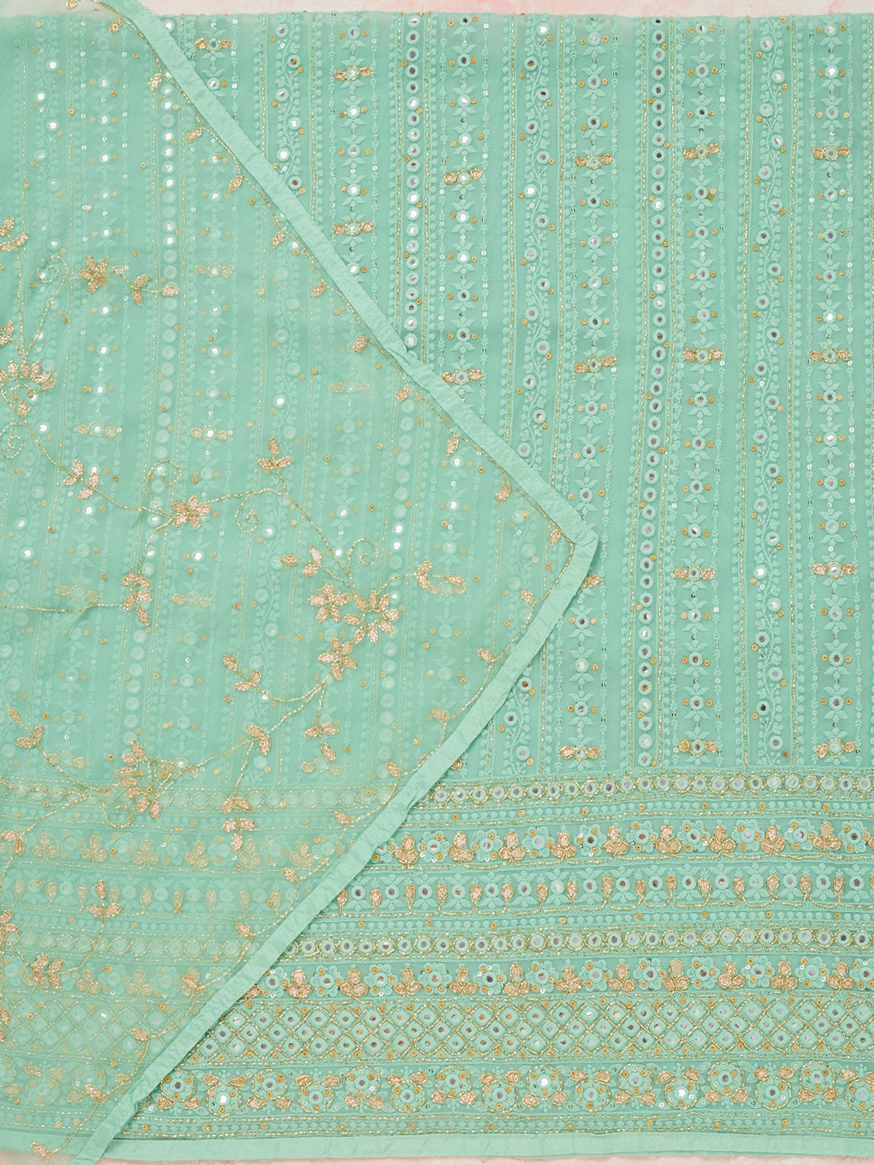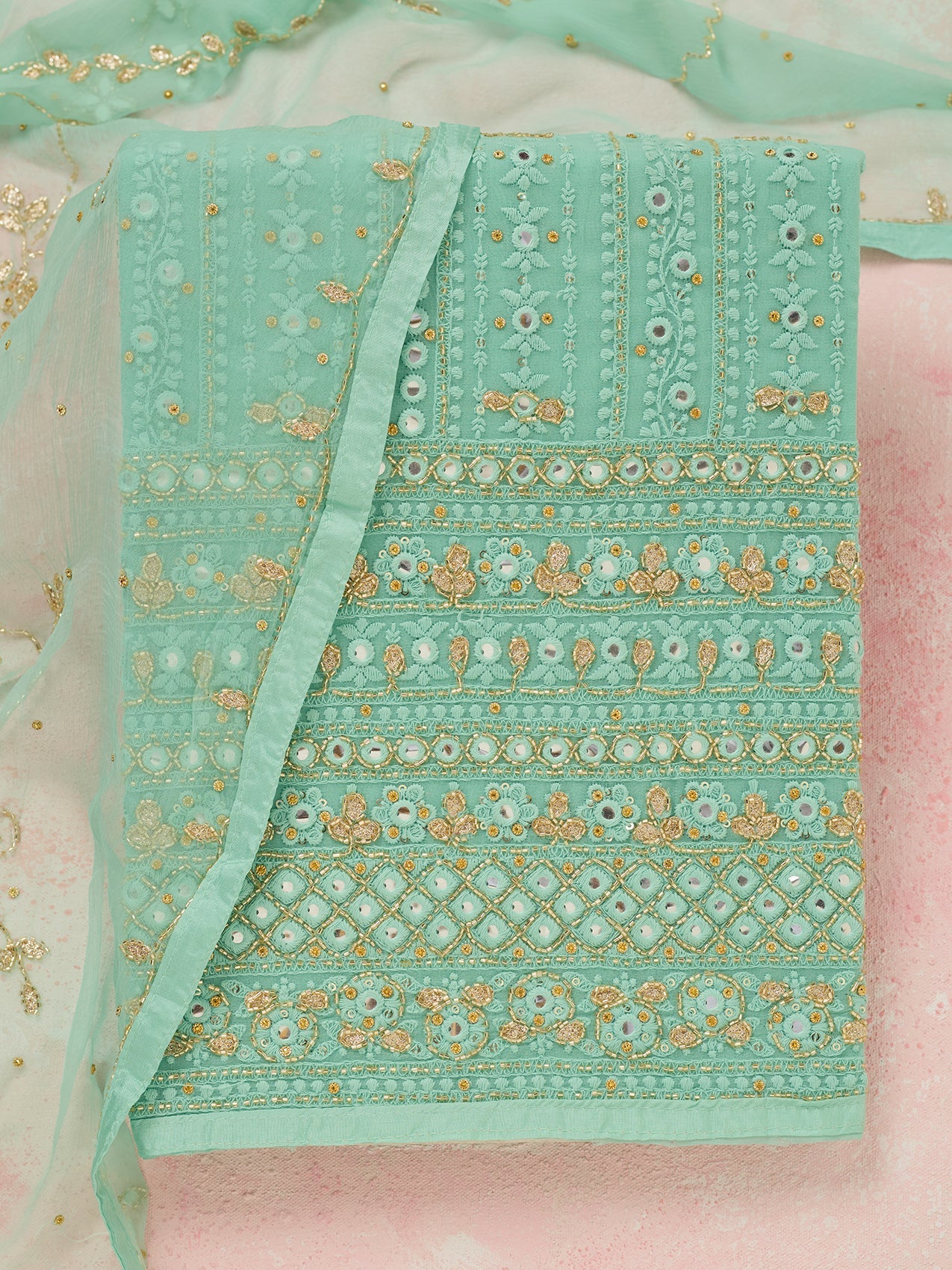 Sea Green Threadwork Georgette Unstitched Salwar Suit