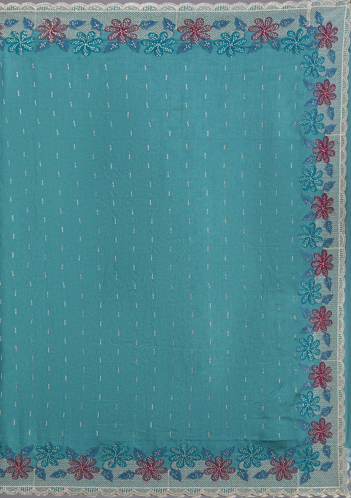 Sea Green Saree in Soft Raw Silk fabric. The Saree is elevated with Threadwork embroidery. It comes with an Unstitched blouse. Comes with the Koskii promise of premium quality.