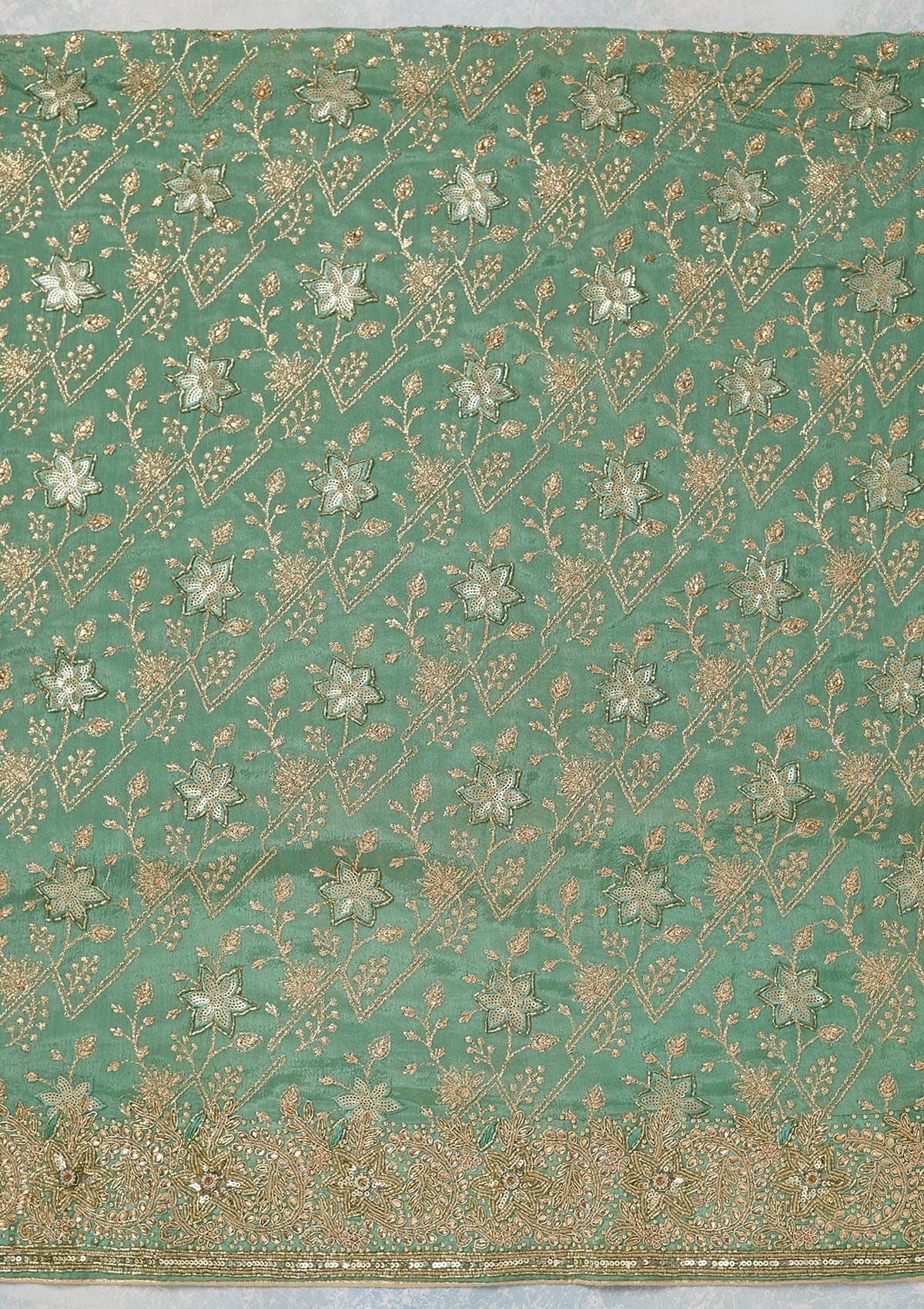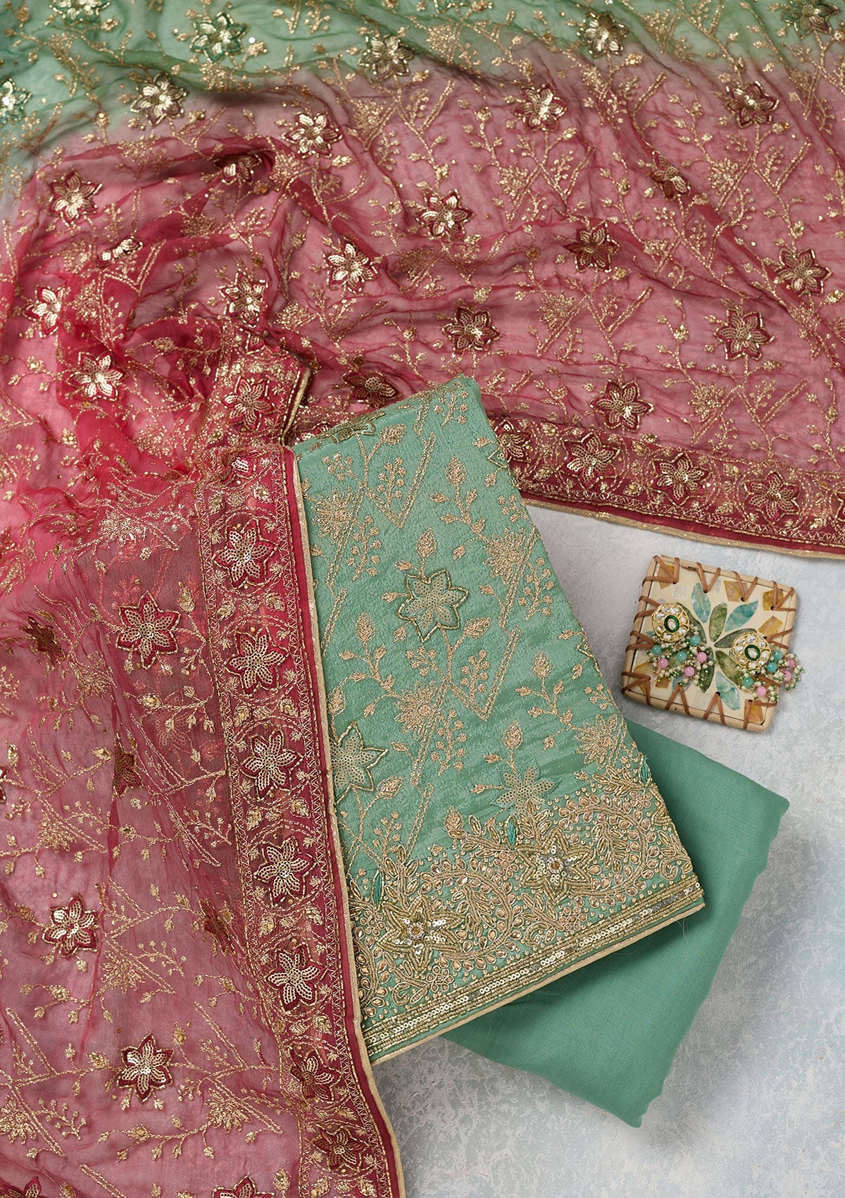 Sea Green Zariwork Georgette Unstitched Salwar Suit