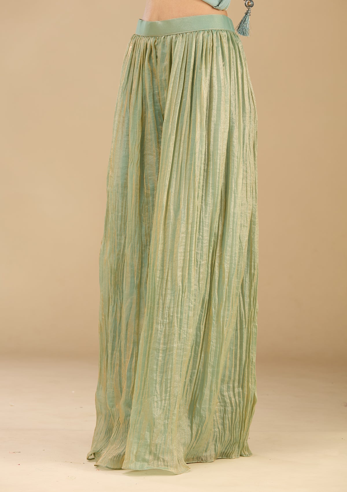 Sea Green Salwar_RM in Satin fabric. The Salwar_RM is embellished with Zariwork (Gold) embroidery. Accompanied with a bottom and dupatta. Comes with the Koskii promise of premium quality.