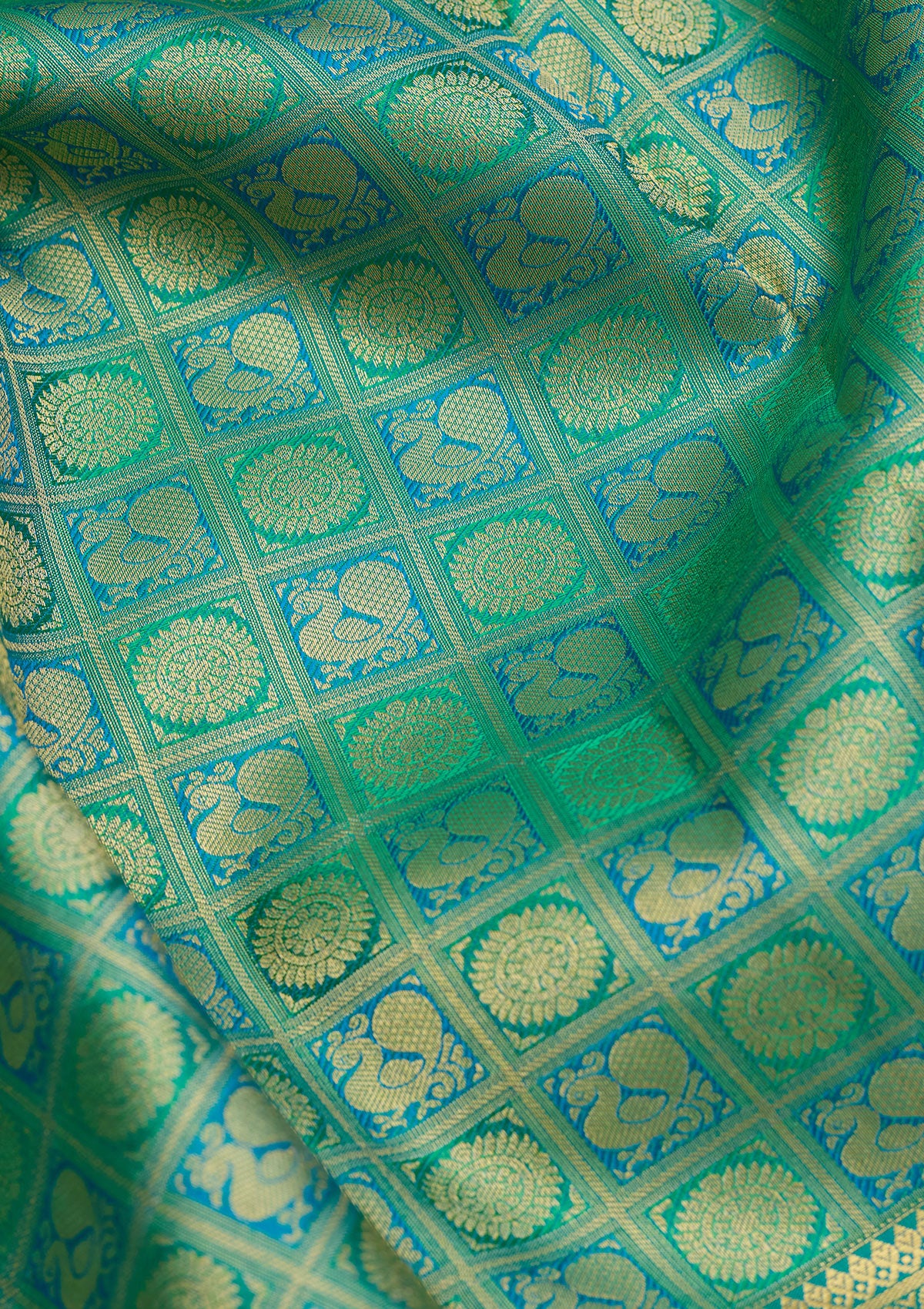 Sea Green Zariwork (Gold) Silk Silk Saree