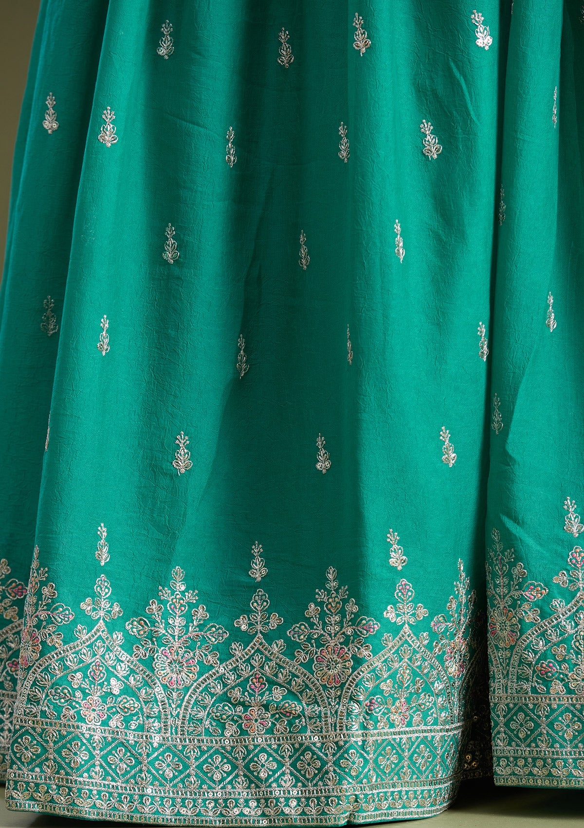 Sea Green Zariwork (Gold) Soft Raw Silk Readymade Lehenga