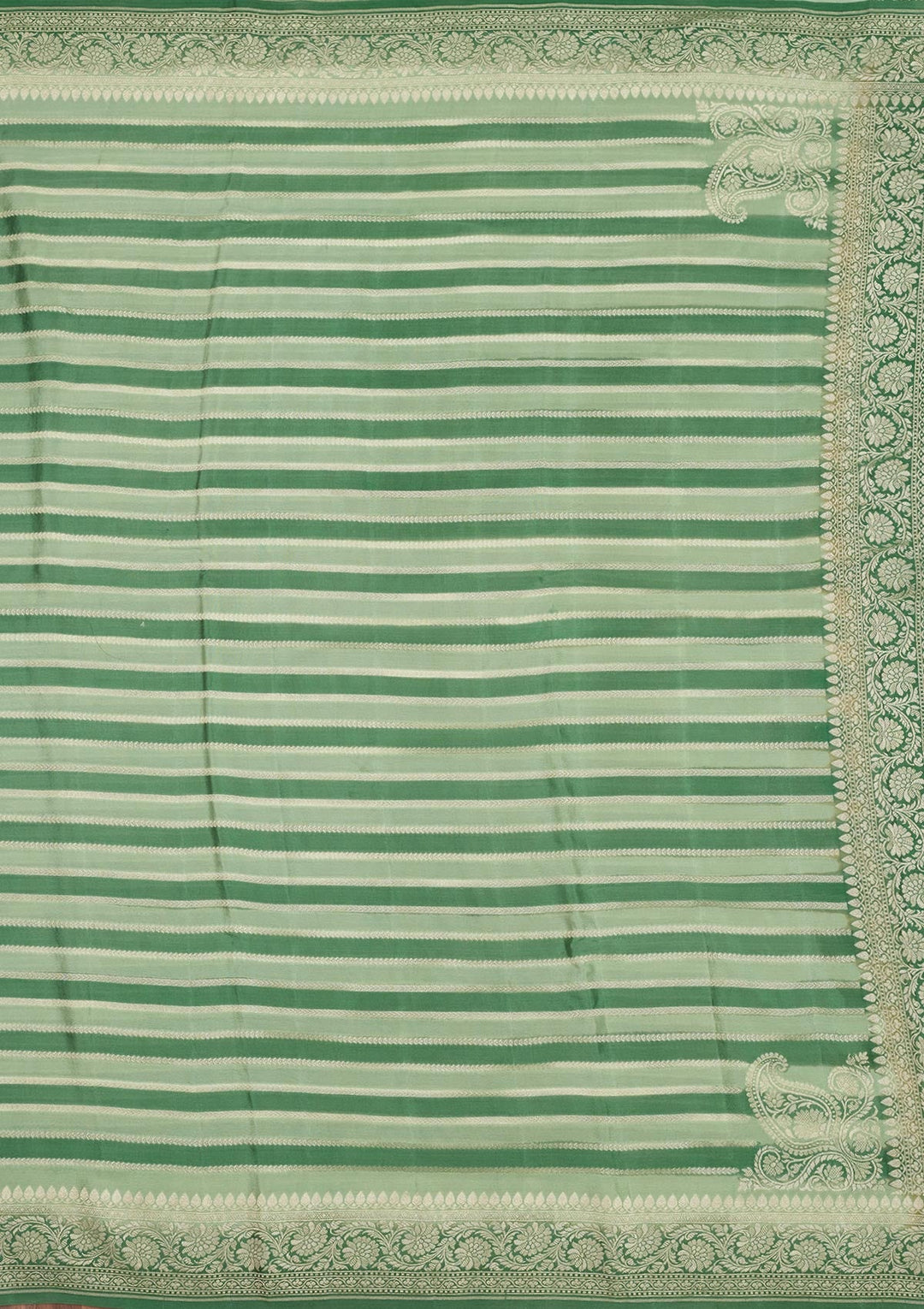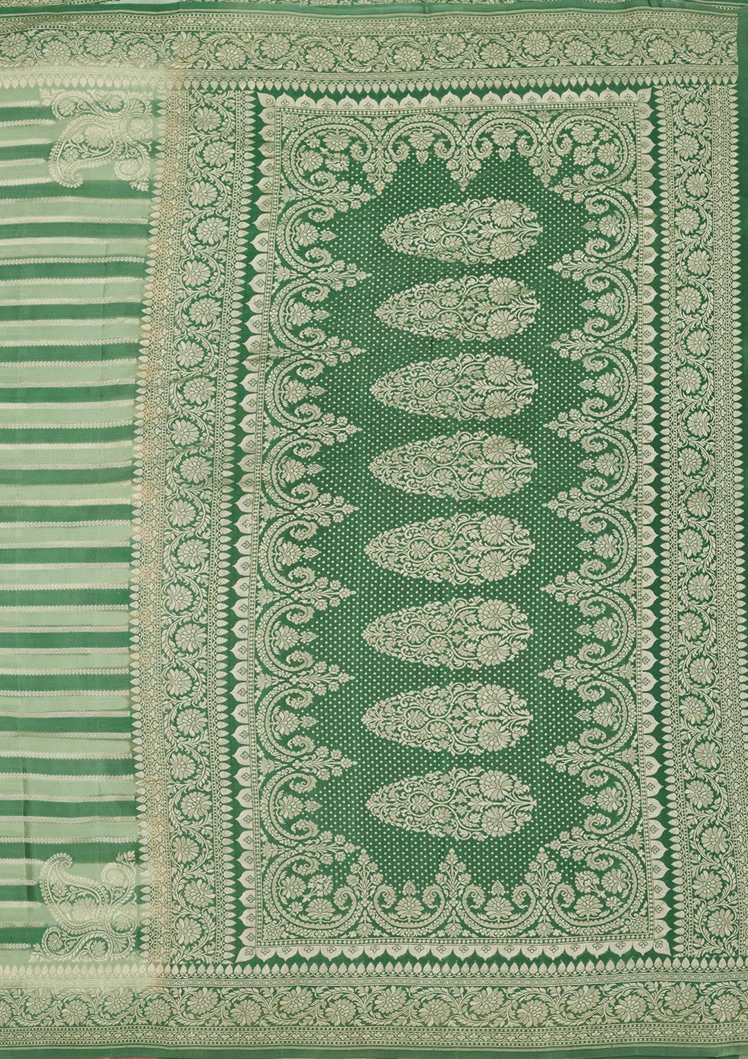 Sea Green Zariwork Pure Silk Saree-Koskii