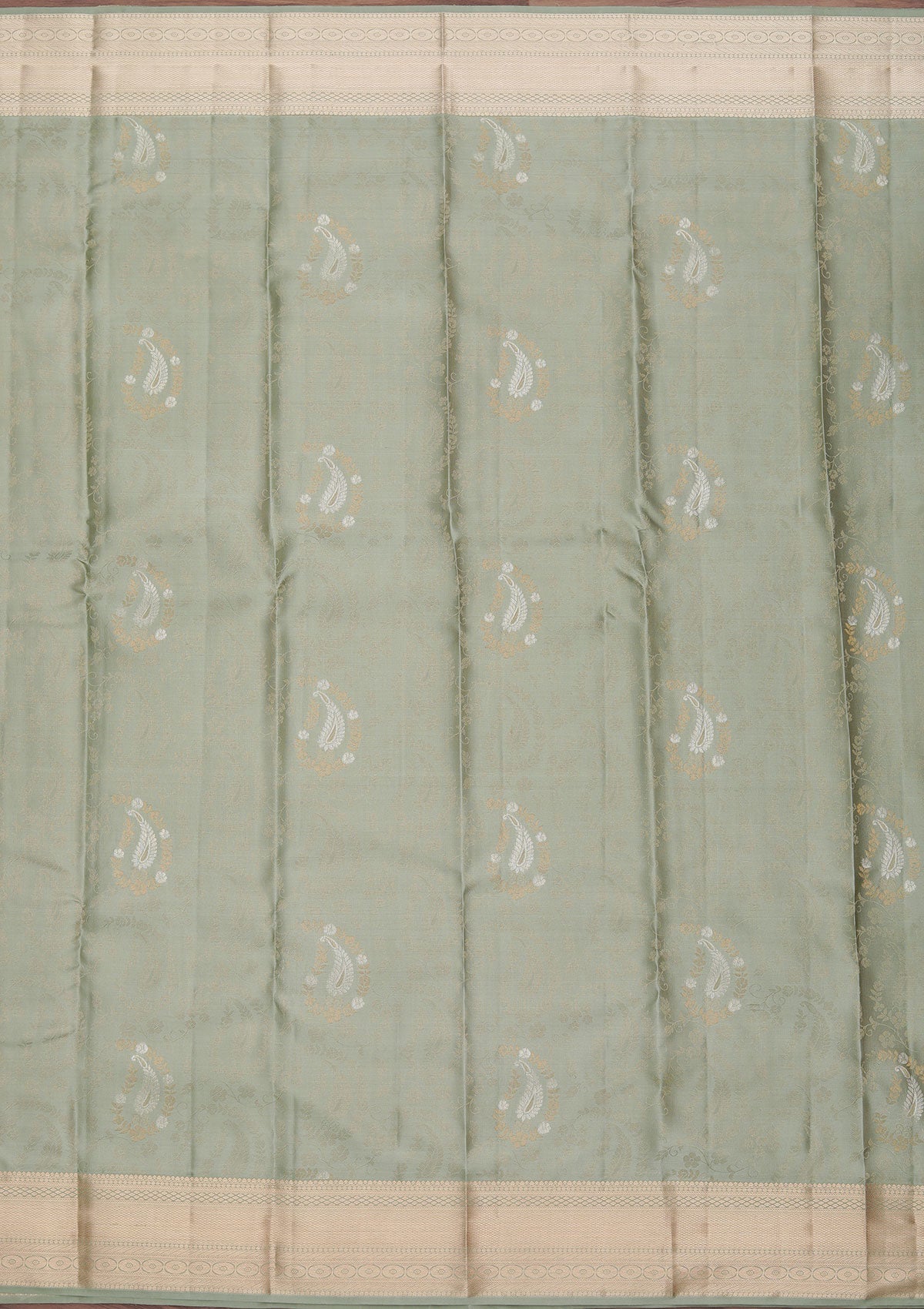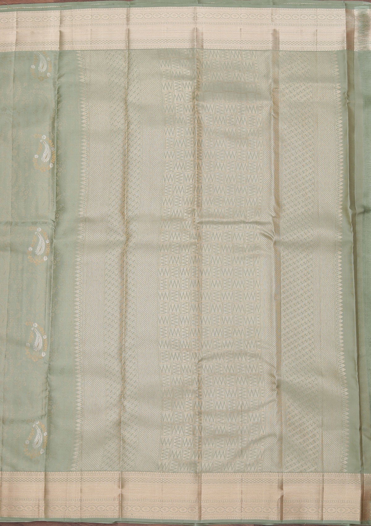 Sea Green Silk Saree in Pure Silk fabric. The Silk Saree is elevated with Zariwork embroidery. It comes with an Unstitched blouse. Comes with the Koskii promise of premium quality.