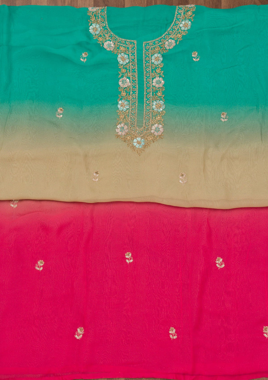 Sea Green Zariwork Semi Crepe Unstitched Salwar Suit