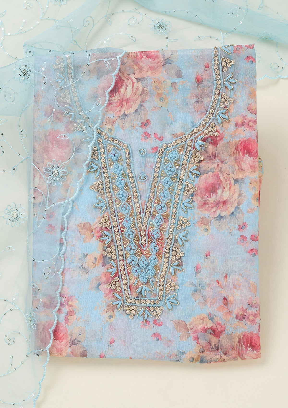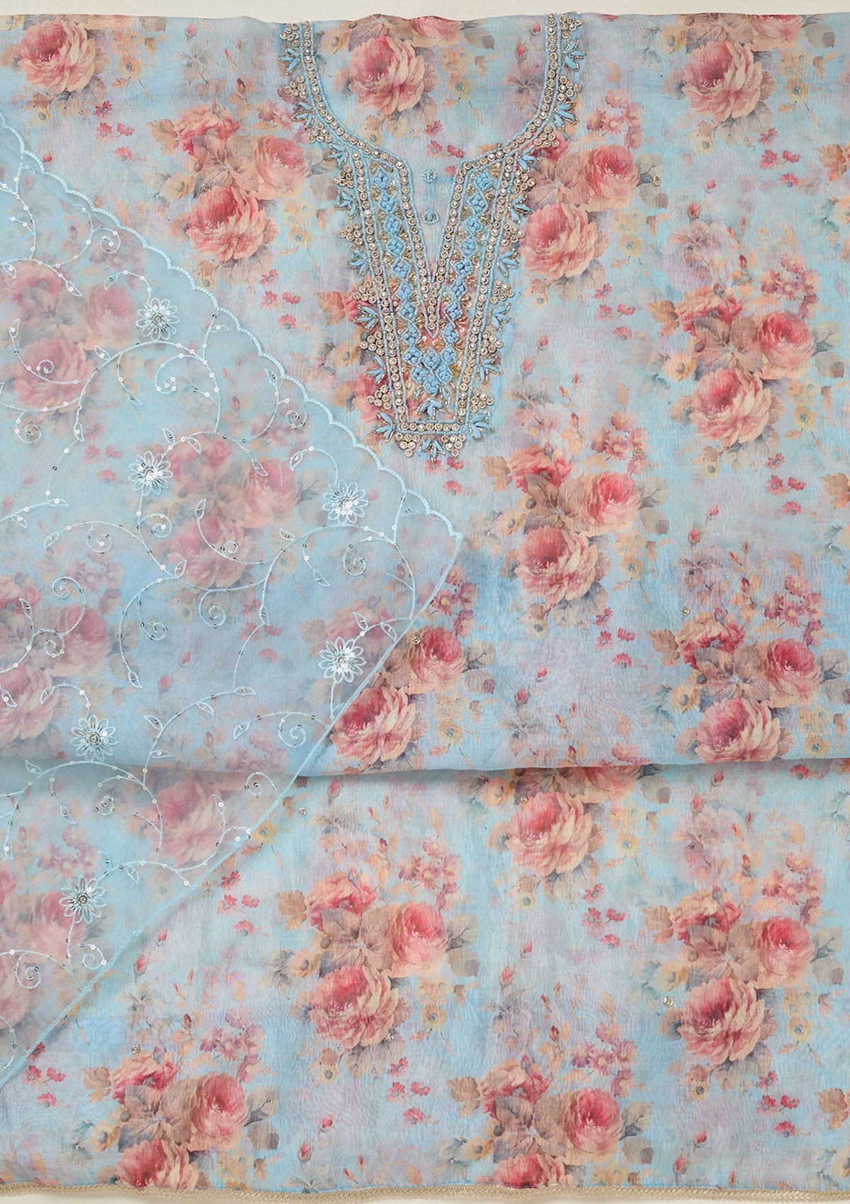 Sky Blue Aariwork Tissue Unstitched Salwar Suit