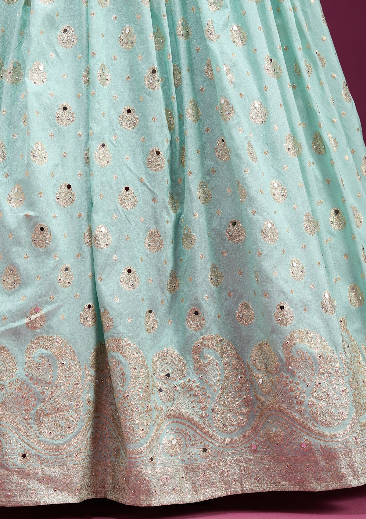 Sky Blue Mirrorwork Banarasi Readymade Lehenga