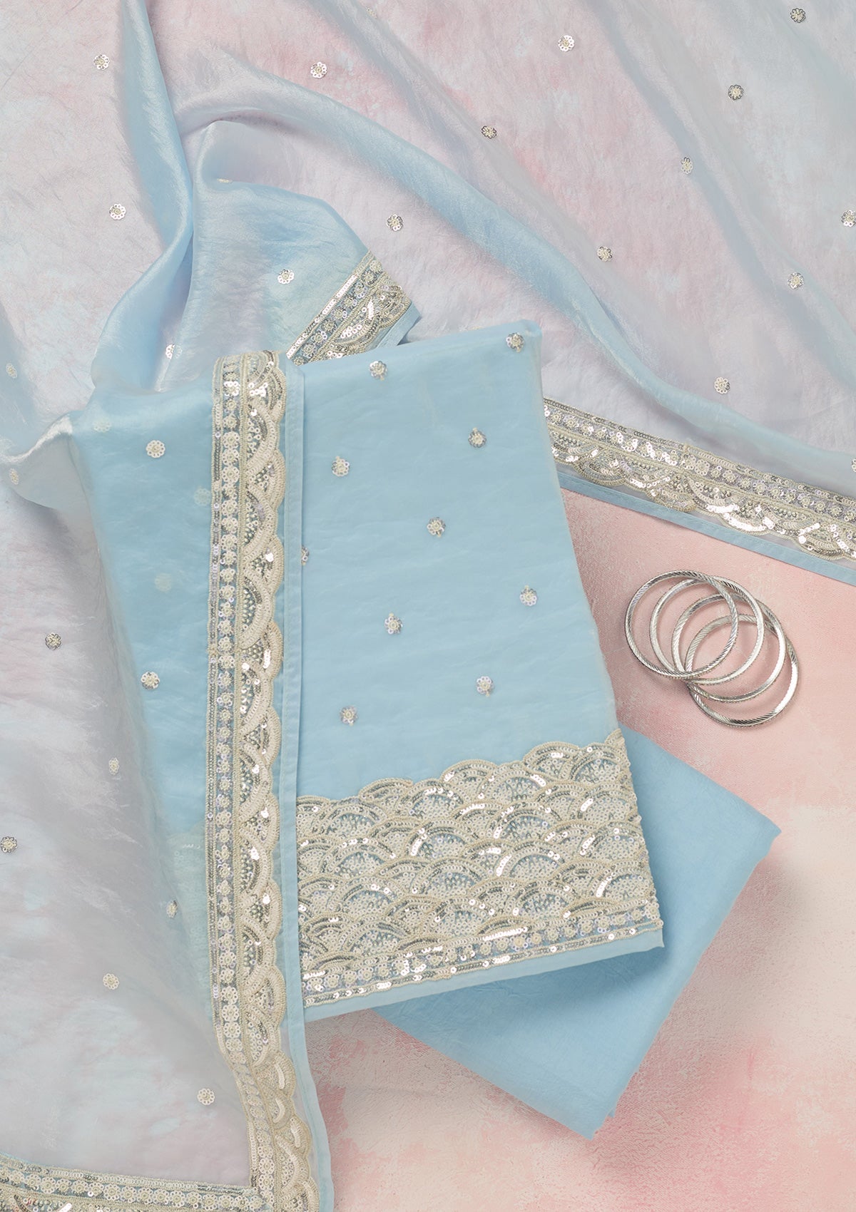 Sky Blue Sequins Tissue Unstitched Salwar Suit