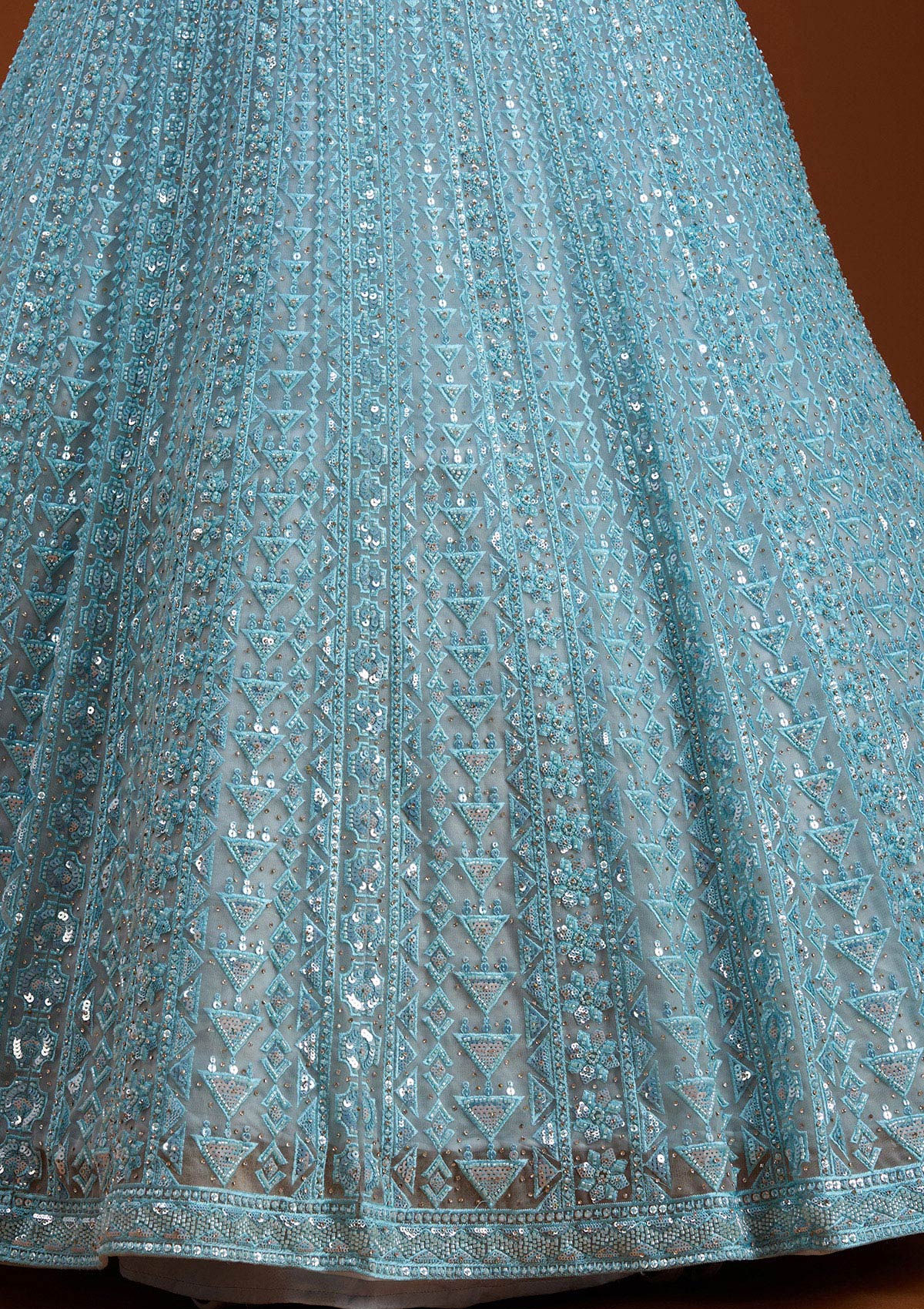 Sky Blue Threadwork Net Readymade Lehenga