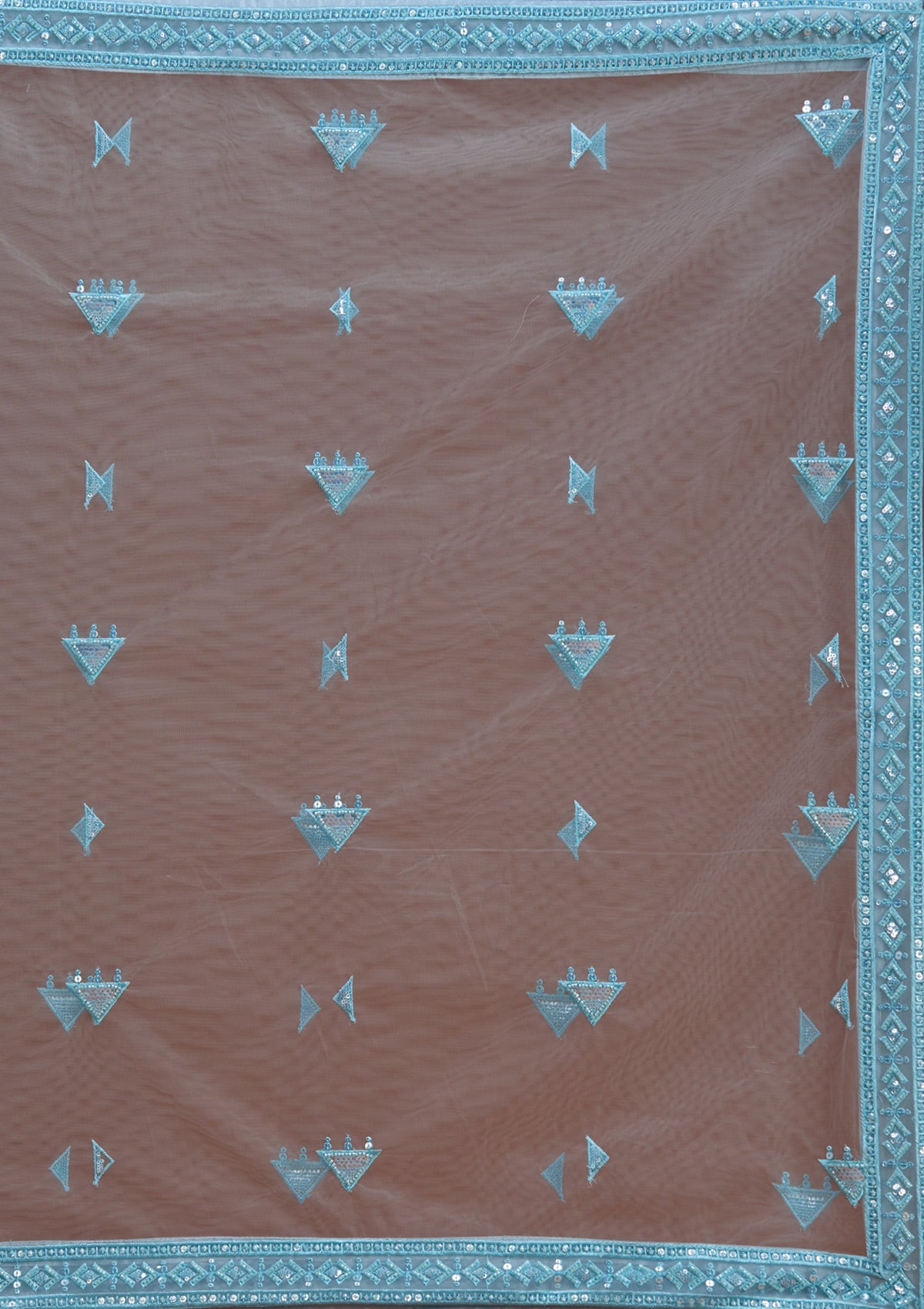 Sky Blue Readymade Lehenga in Net fabric. The Lehenga is embellished with Threadwork embroidery. Accompanied with an Readymade blouse and dupatta. Comes with the Koskii promise of premium quality.