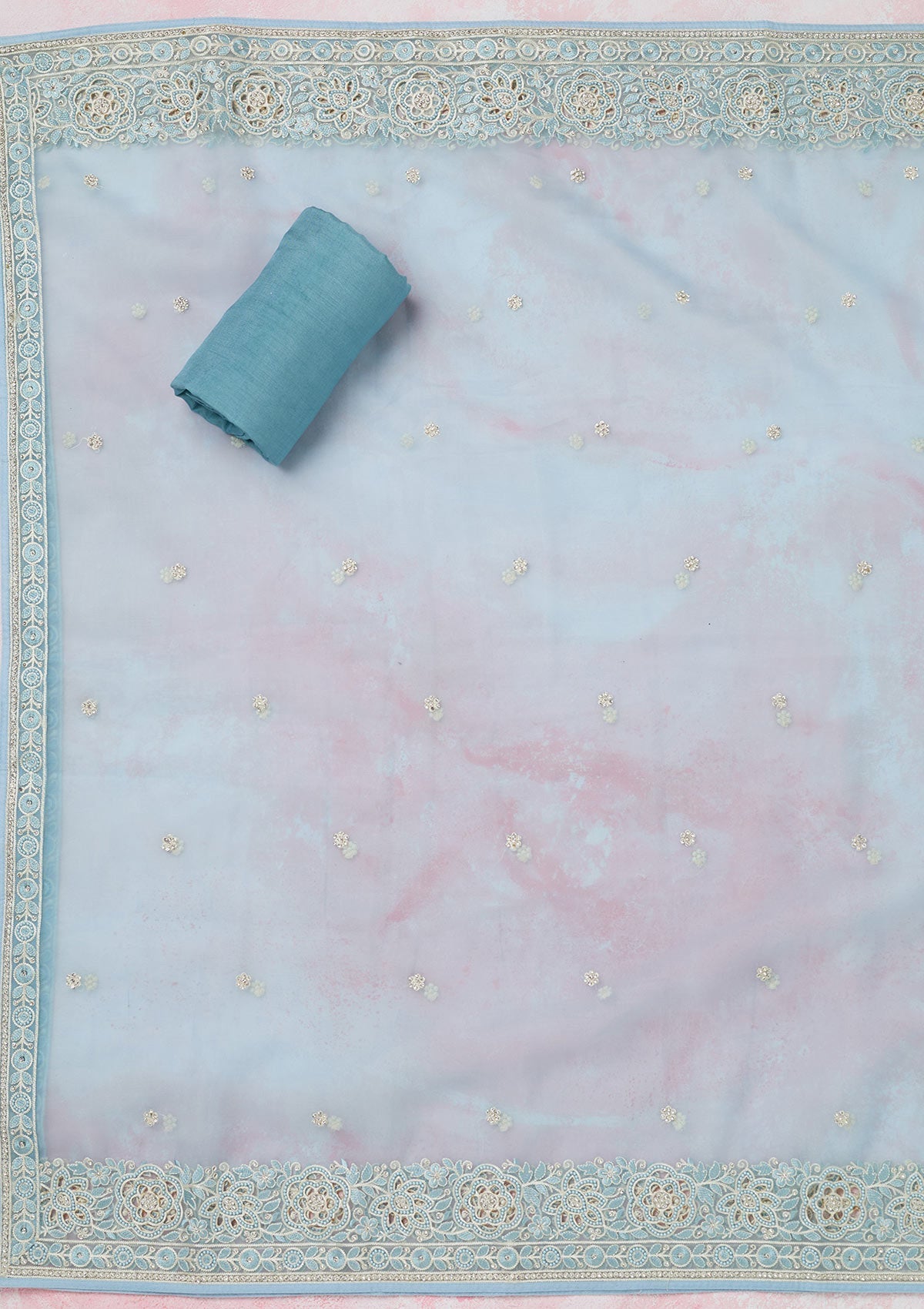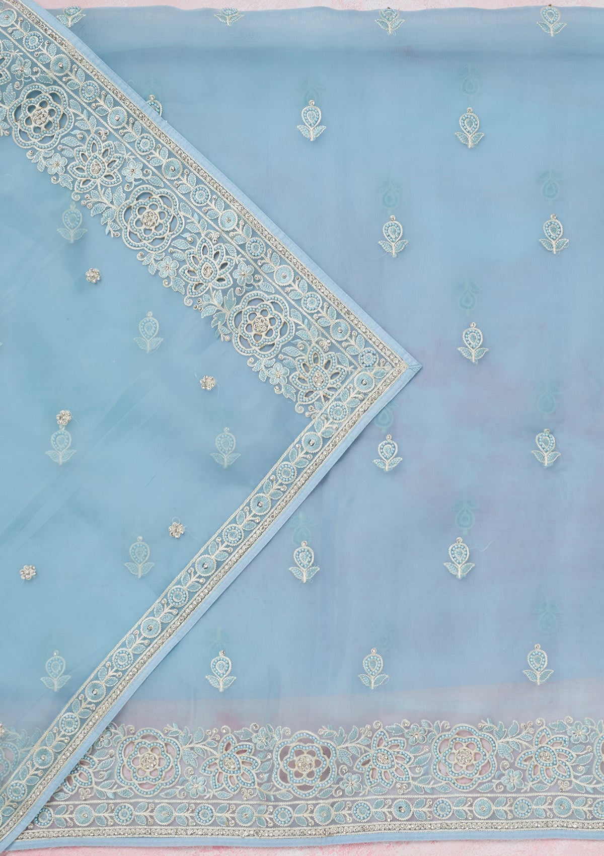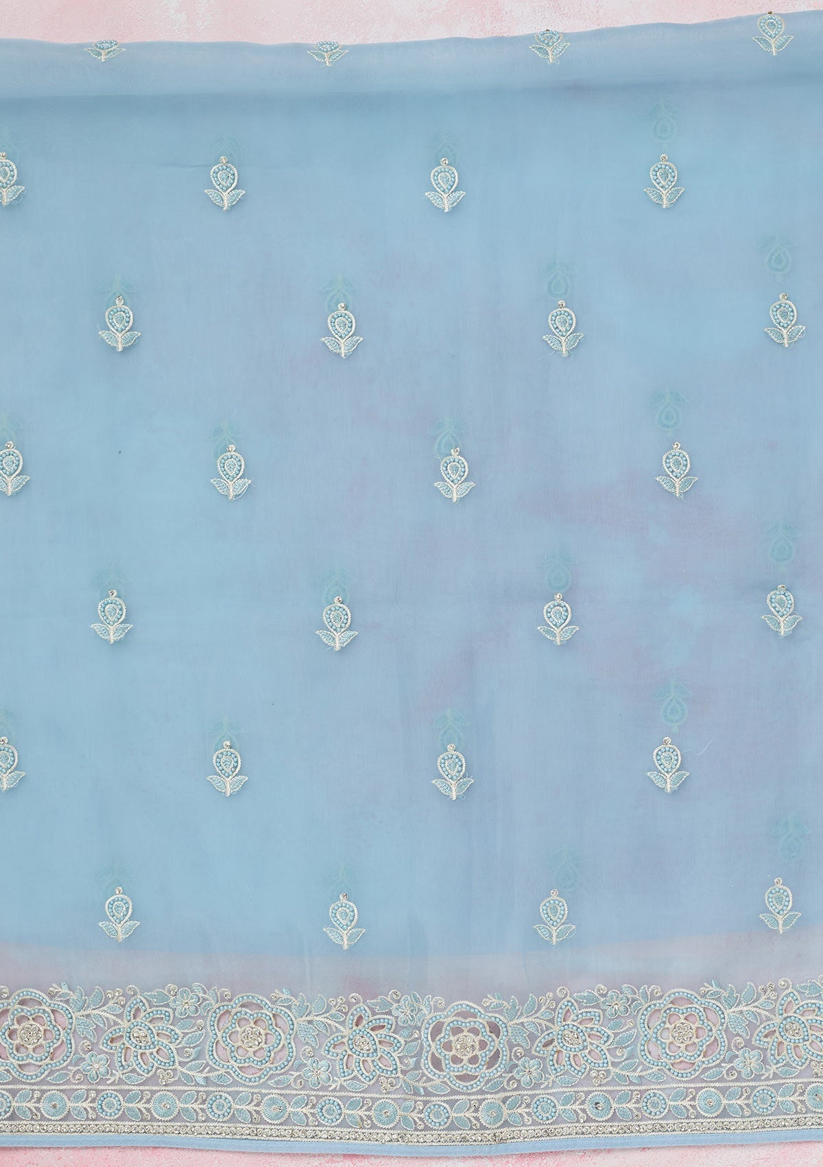 Sky Blue Threadwork Semi Crepe Unstitched Salwar Suit