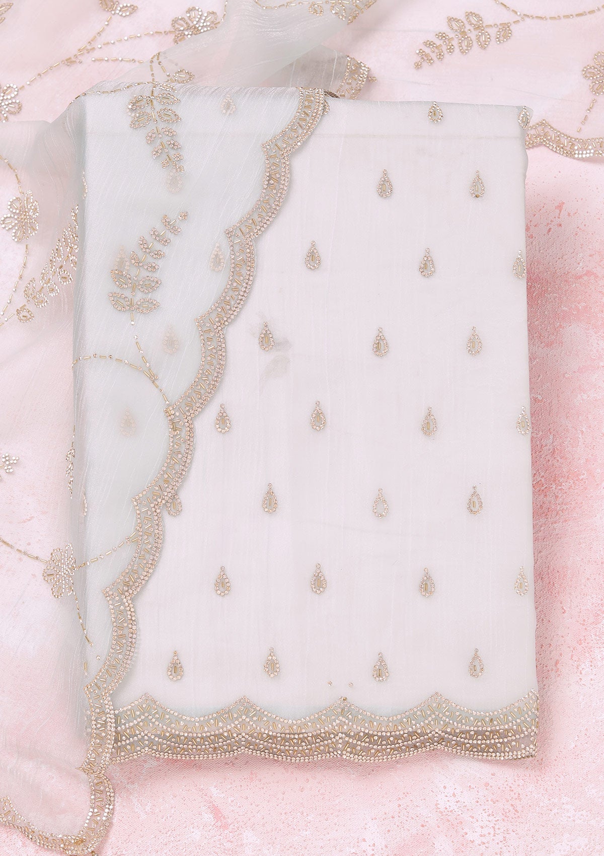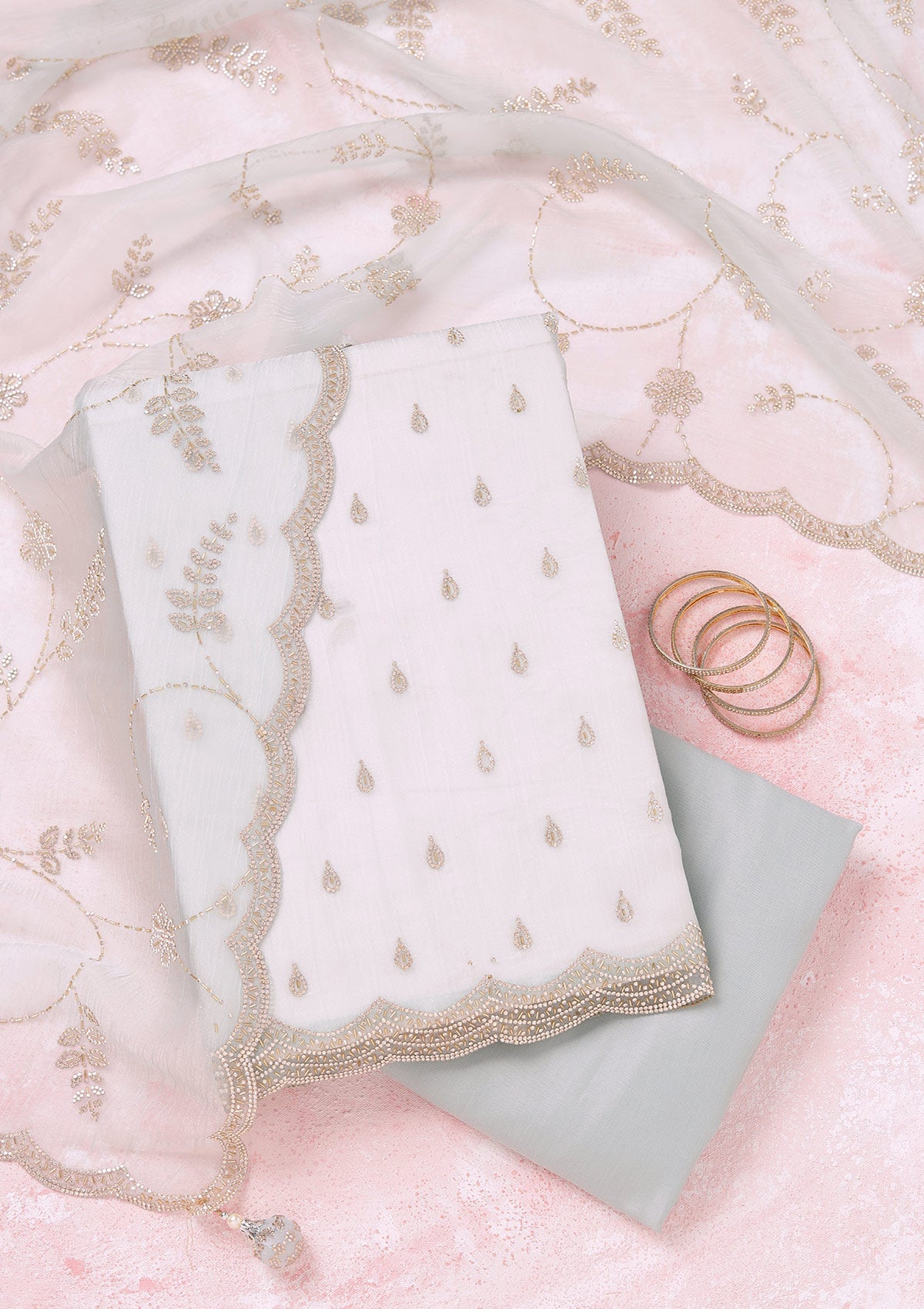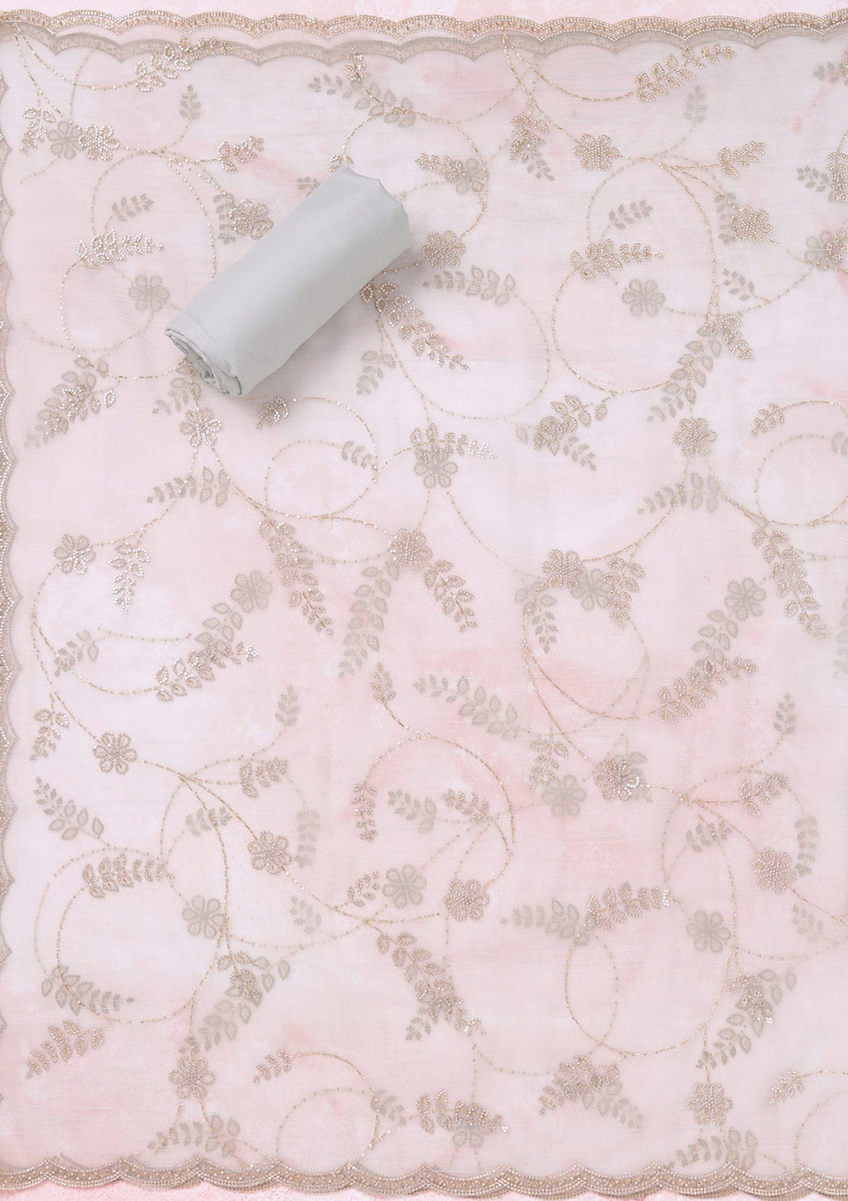 Sky Blue Zariwork (Gold) Tissue Unstitched Salwar Suit
