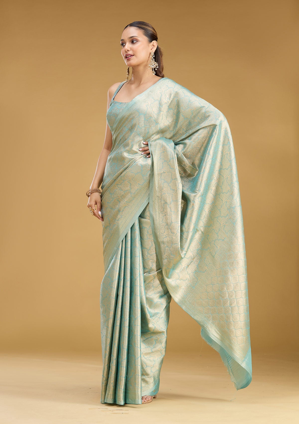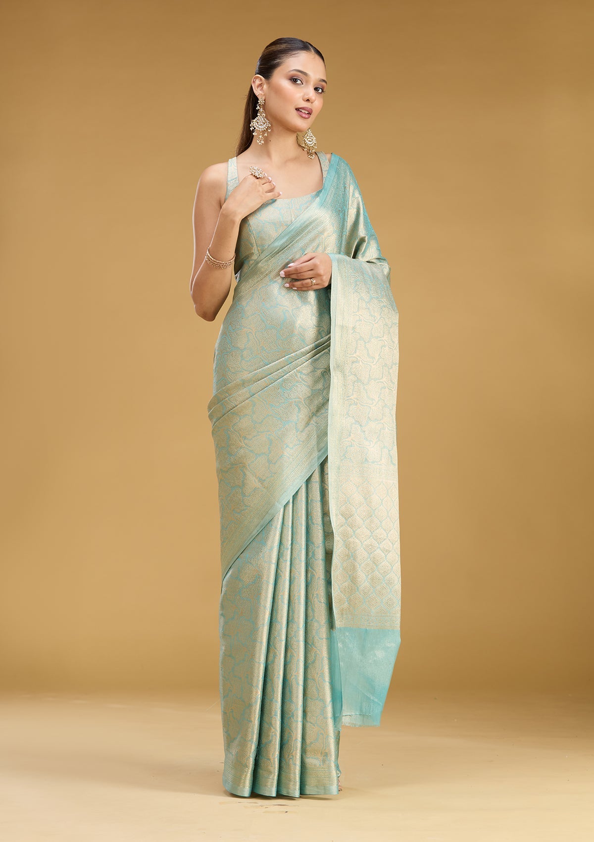 Sky Blue Zariwork (Gold) Tissue Silk Saree