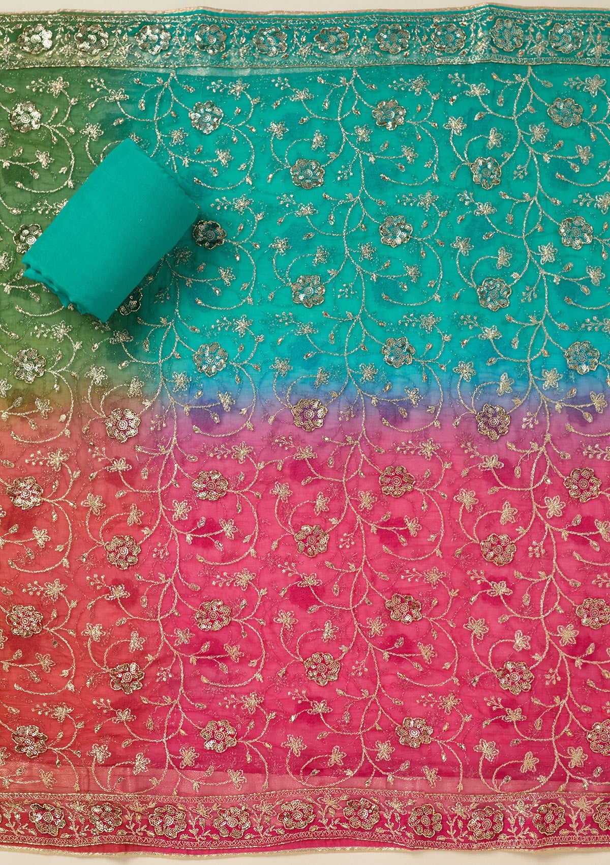 Turquoise Blue Zariwork Georgette Unstitched Salwar Suit