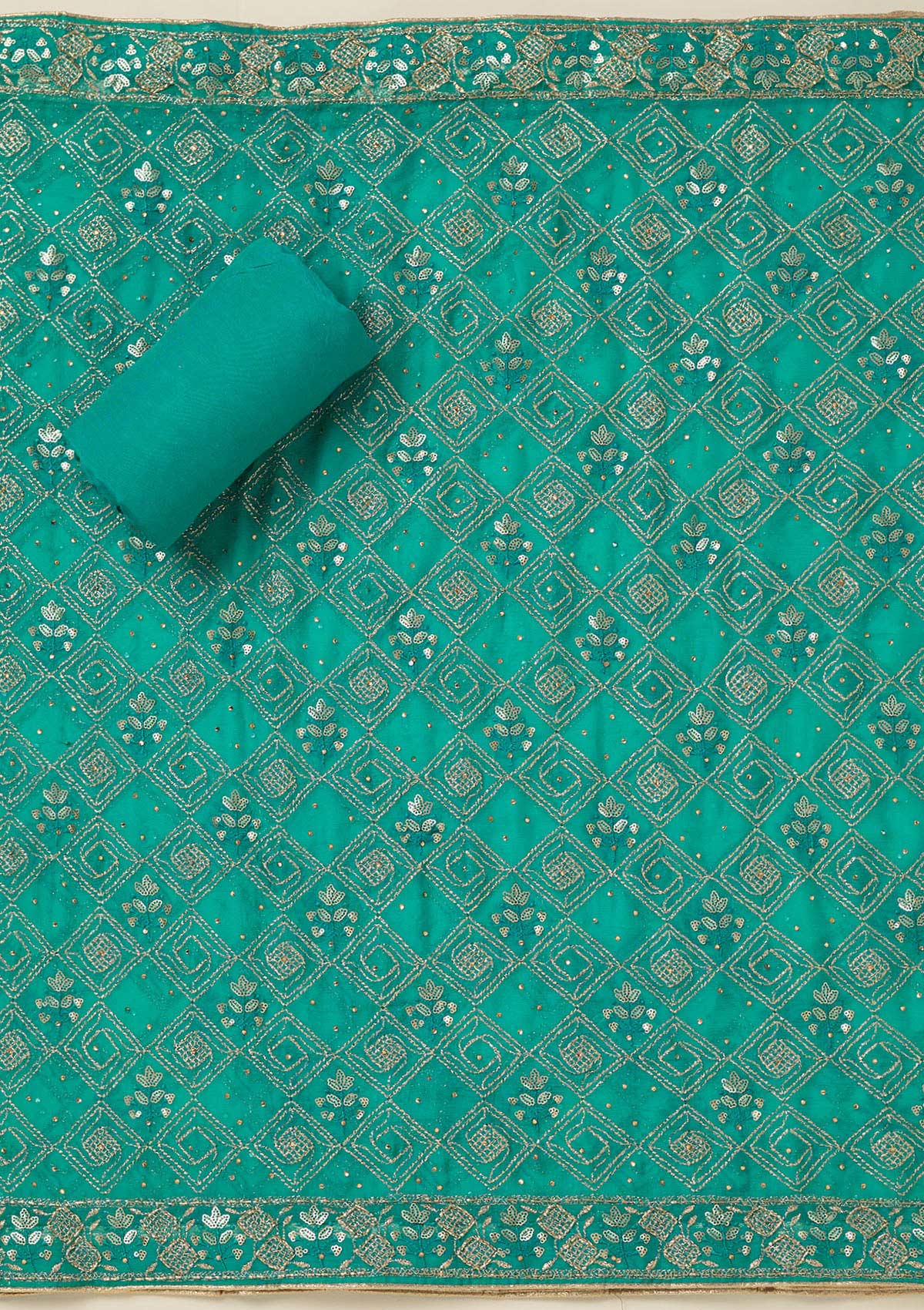 Turquoise Blue Zariwork Georgette Unstitched Salwar Suit