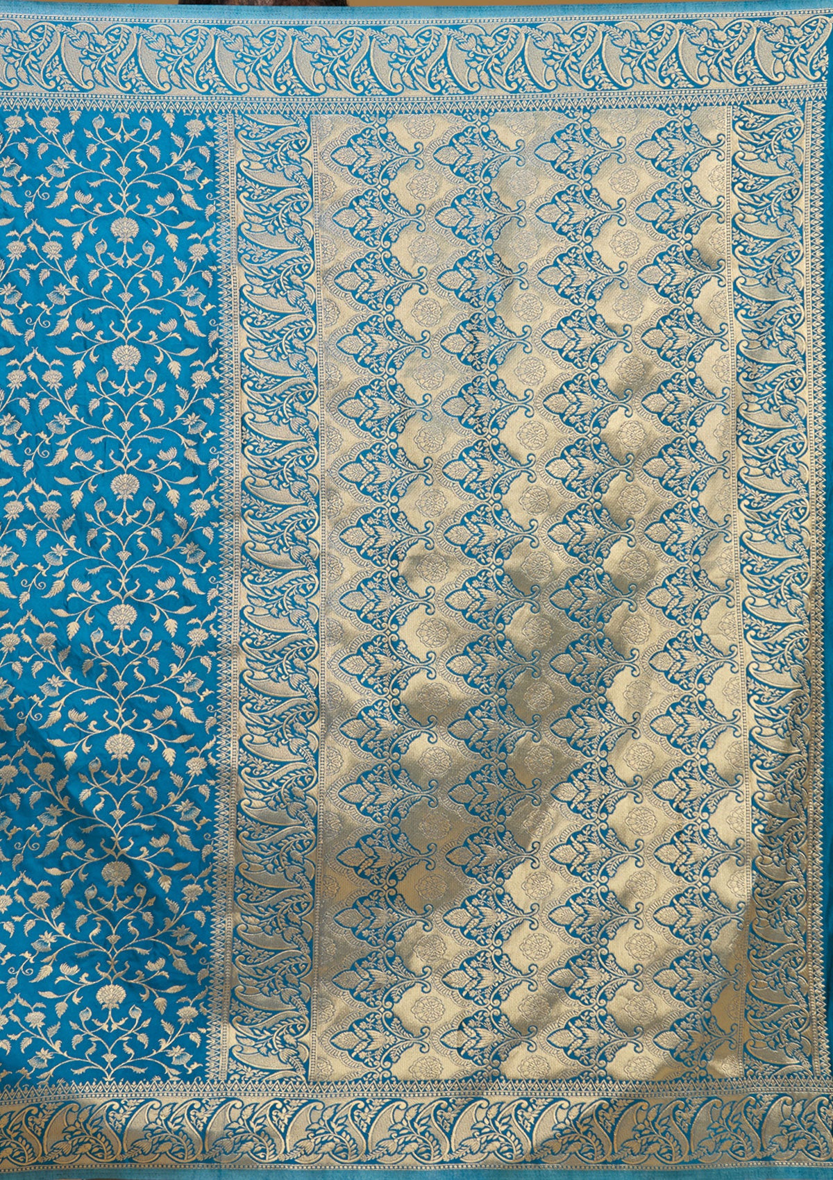 Turquoise Blue Zariwork (Gold) Art Silk Silk Saree