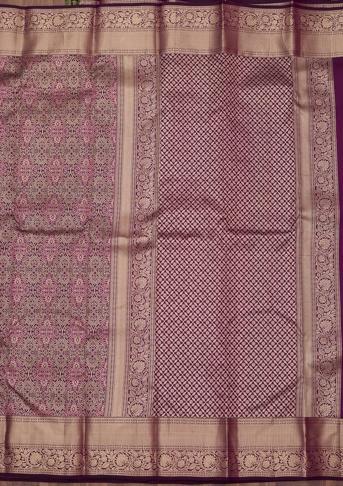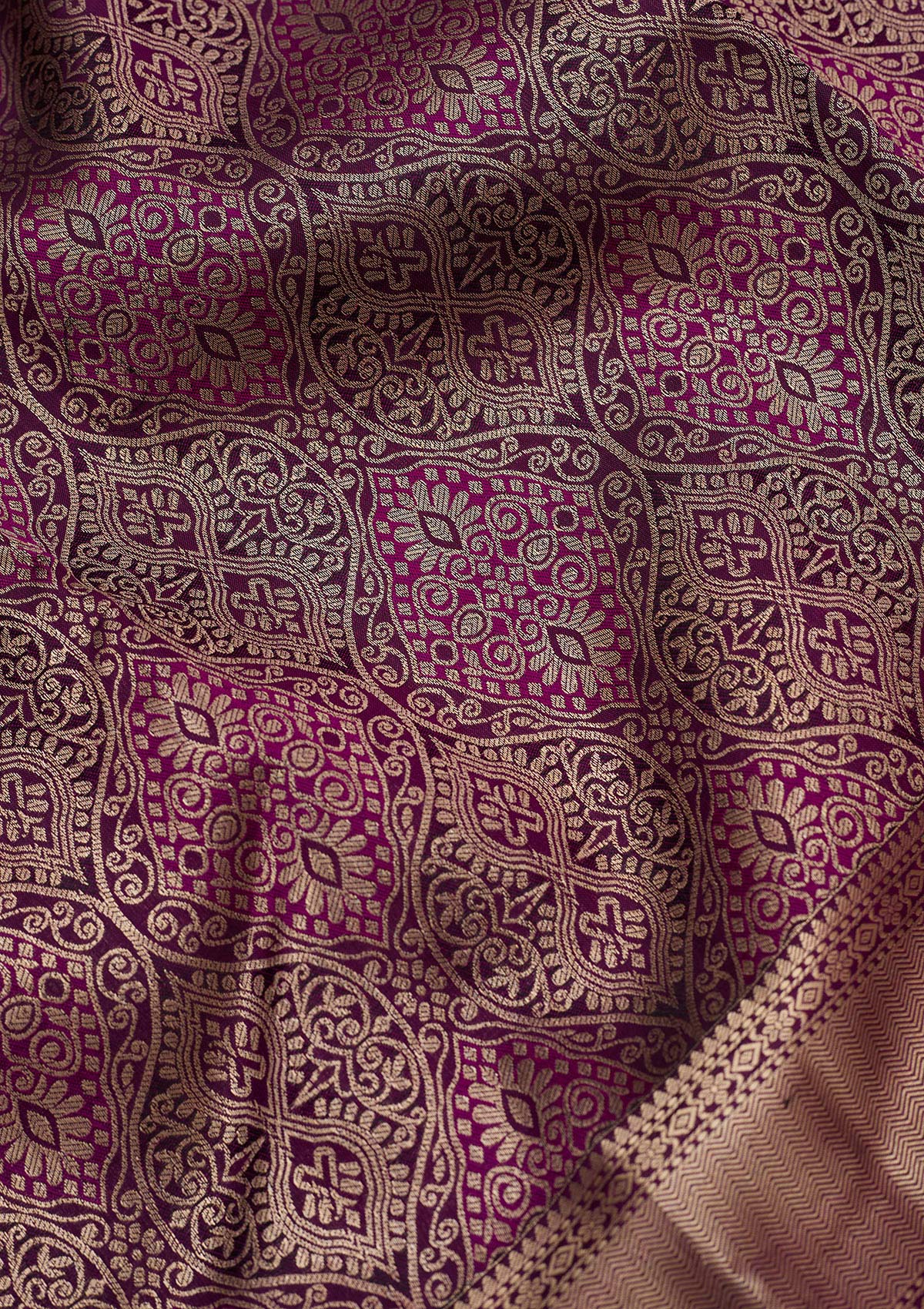 Violet Silk_Saree in Pure Silk fabric. The Silk_Saree is elevated with Zariwork (Silver) embroidery. It comes with an Unstitched blouse. Comes with the Koskii promise of premium quality.