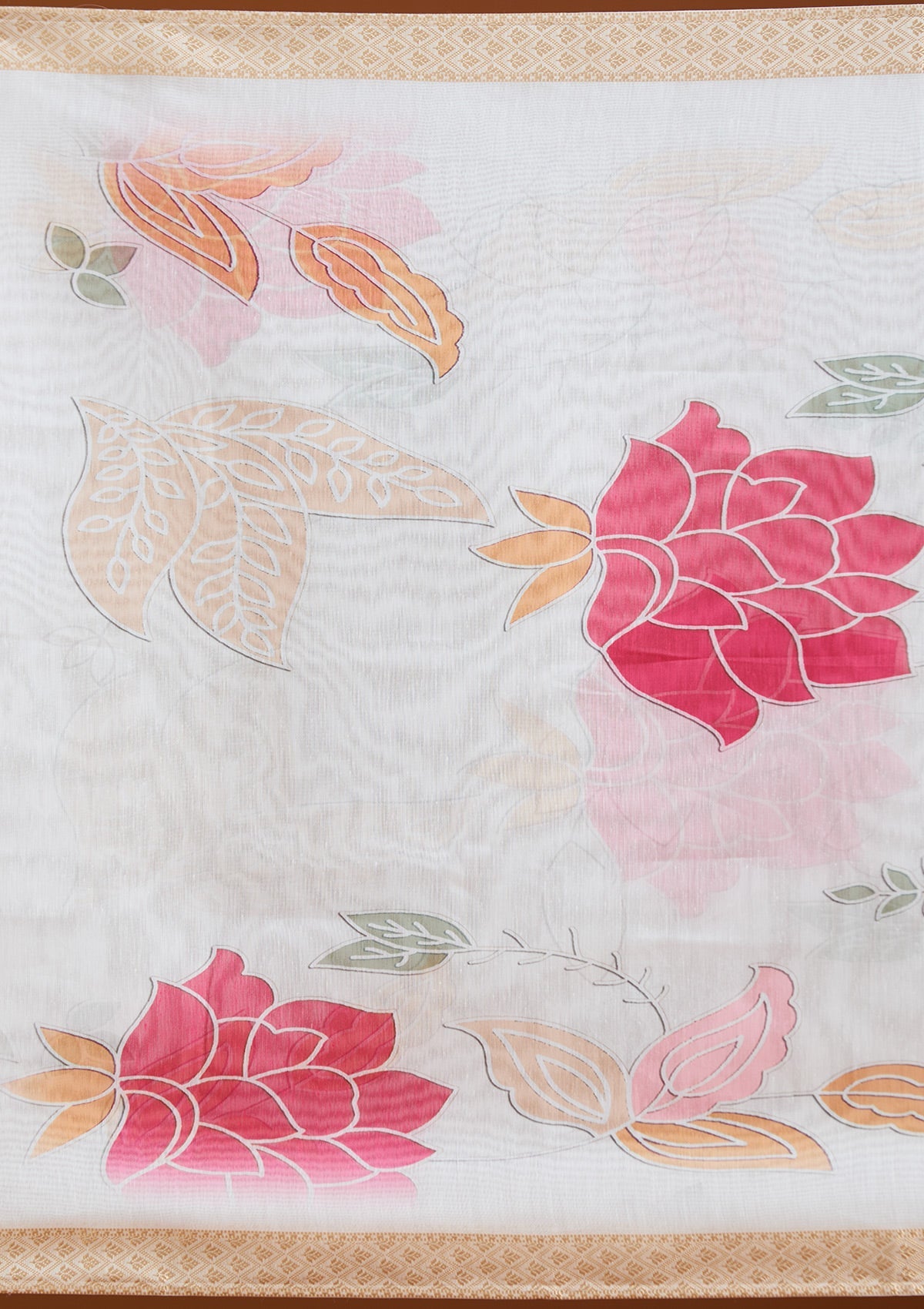 White Salwar Suit in Chanderi fabric. The Salwar Suit is embellished with Threadwork embroidery. Accompanied with a bottom and dupatta. Comes with the Koskii promise of premium quality.