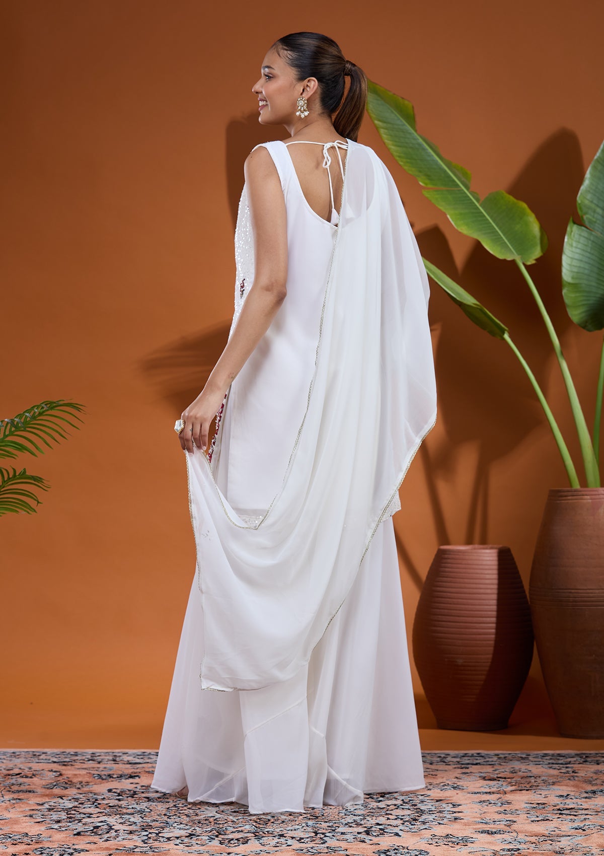 White Salwar_RM in Georgette fabric. The Salwar_RM is embellished with Threadwork embroidery. Accompanied with a bottom and dupatta. Comes with the Koskii promise of premium quality.