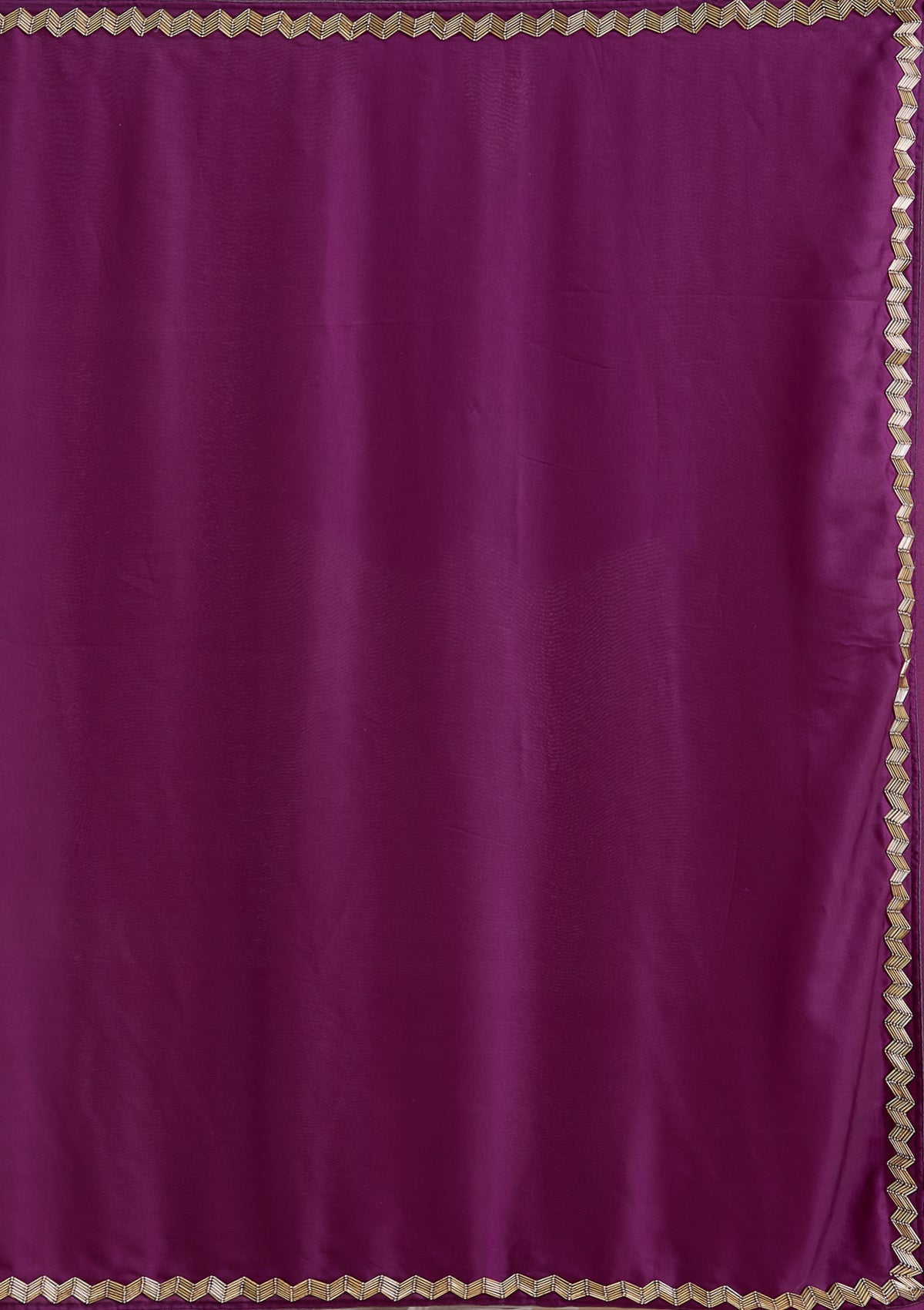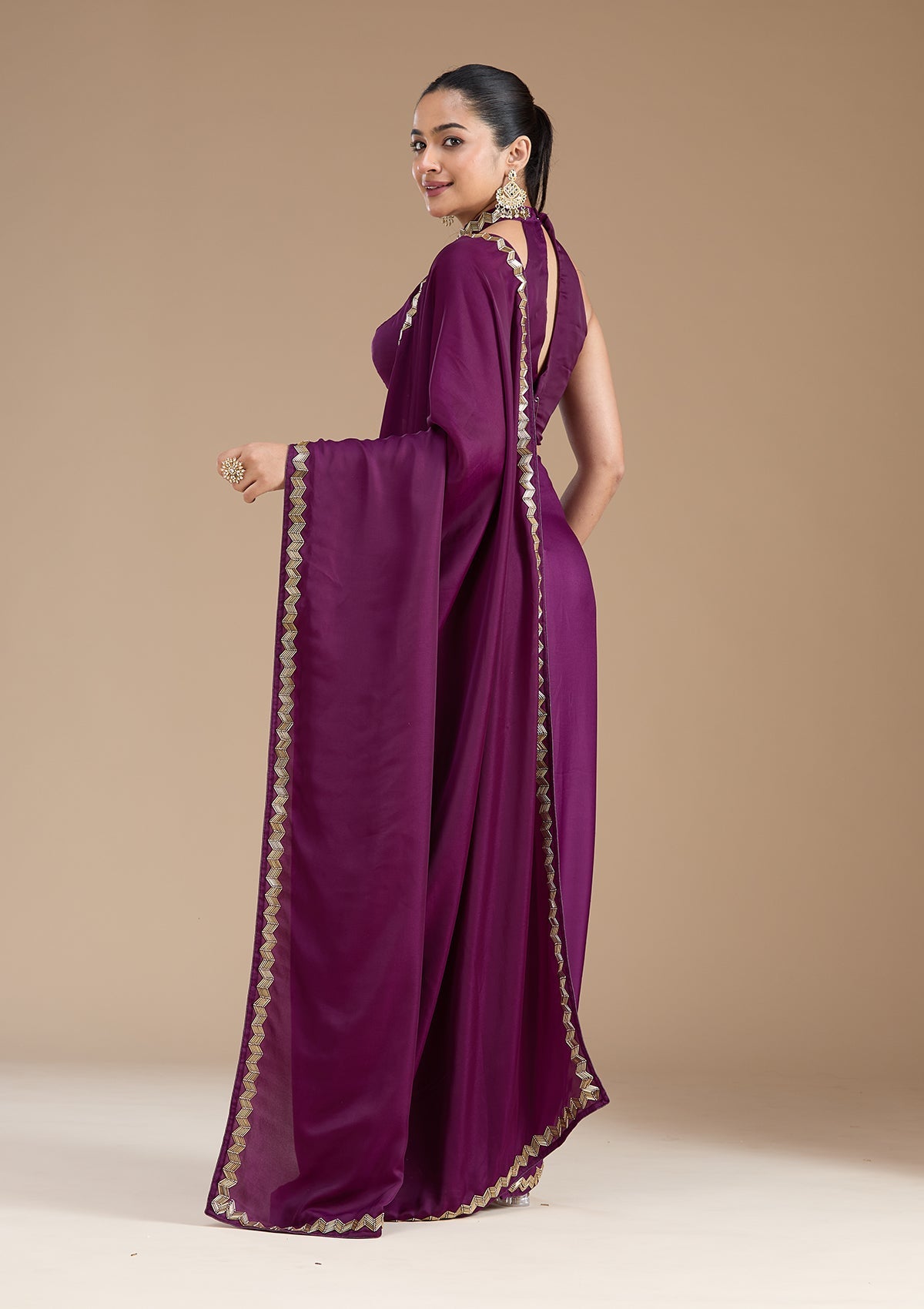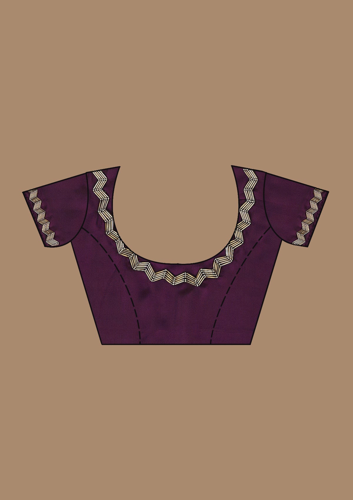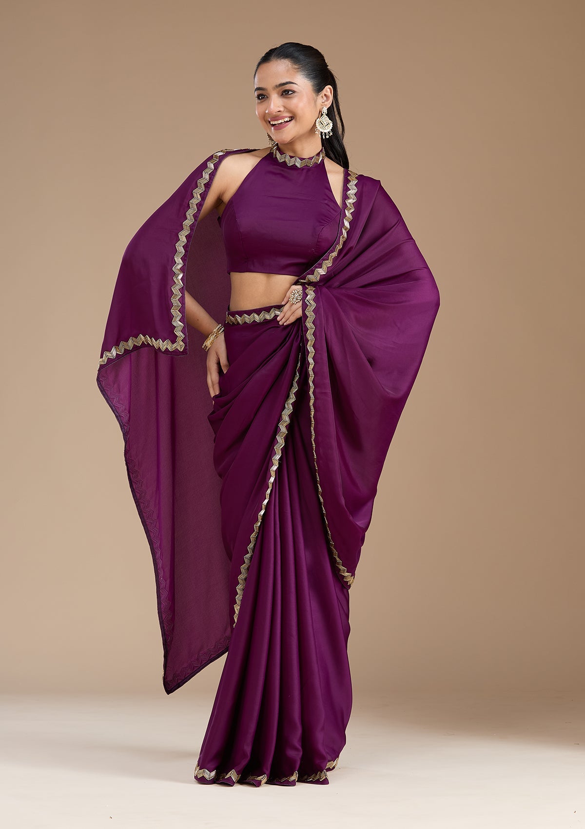 Wine Saree in Satin fabric. The Saree is elevated with Aariwork embroidery. It comes with an Unstitched blouse. Comes with the Koskii promise of premium quality.