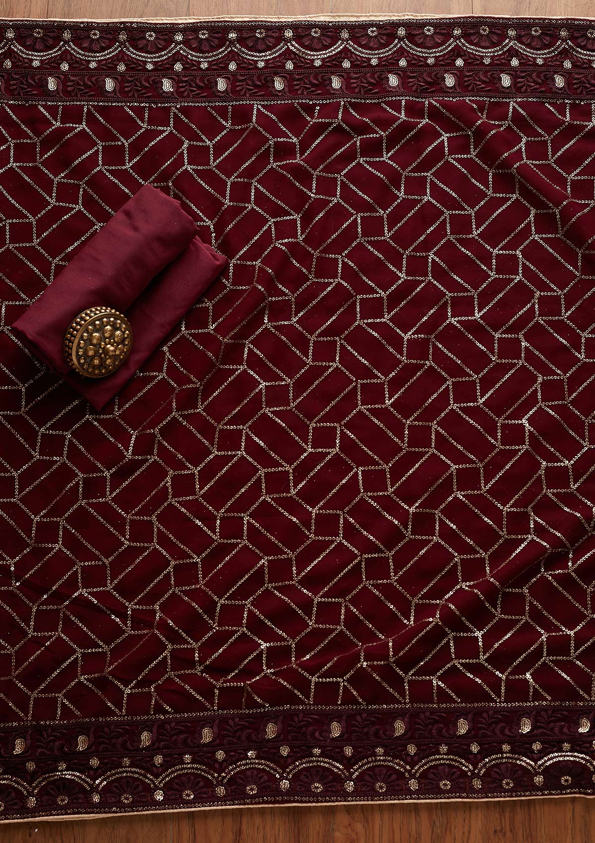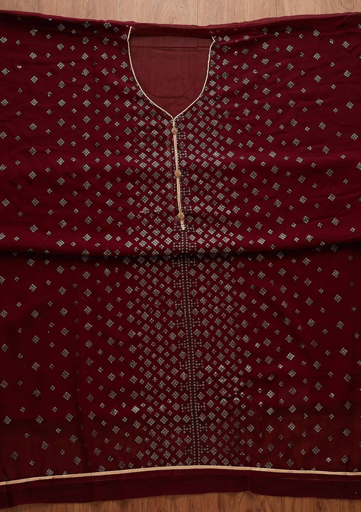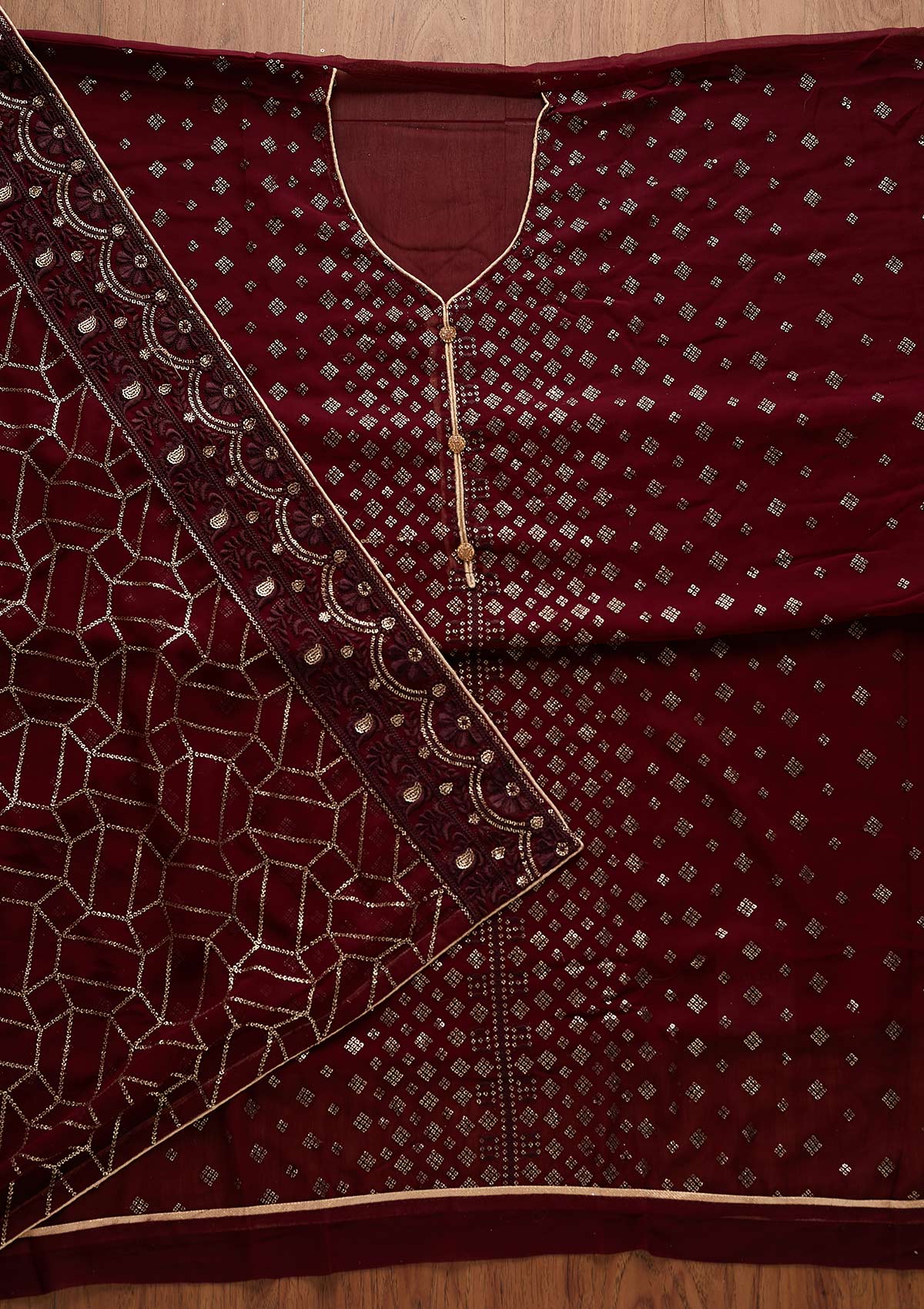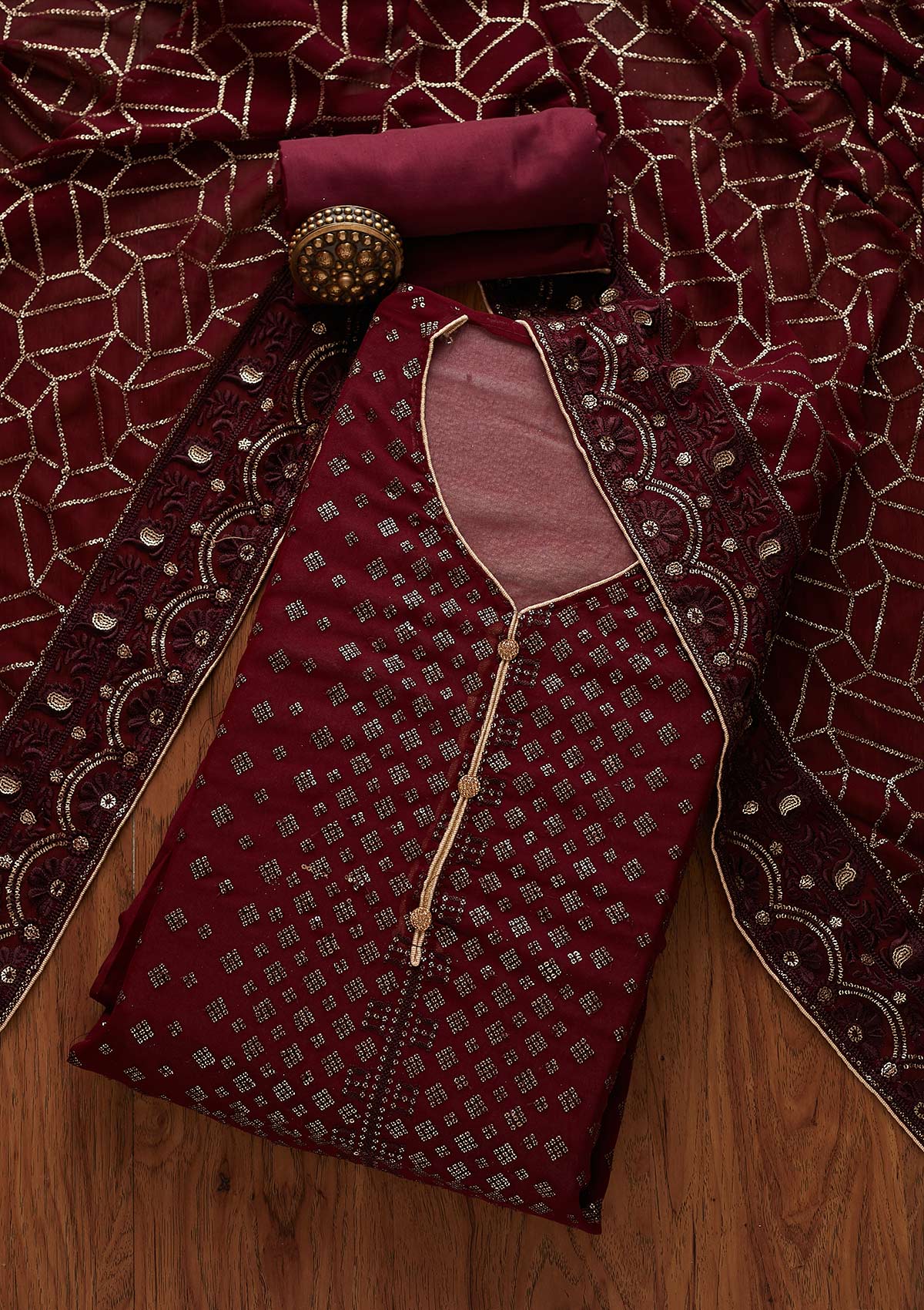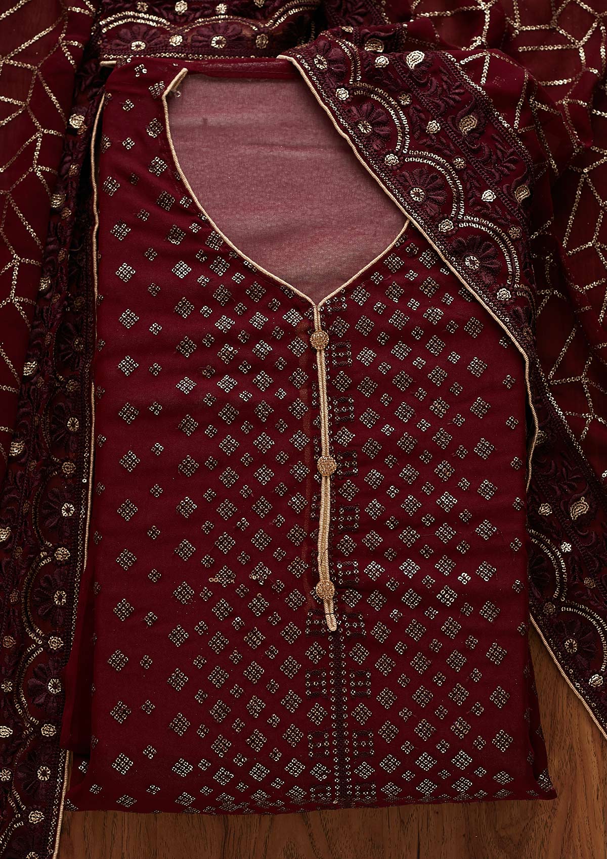 Wine Sequins Georgette Designer Unstitched Salwar Suit - Koskii