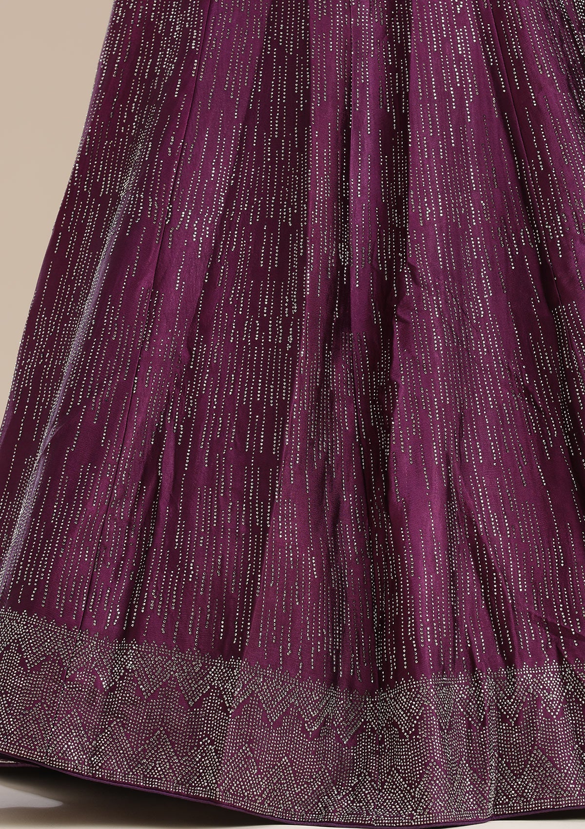 Wine Sequins Semi Crepe Semi-Stitched Lehenga