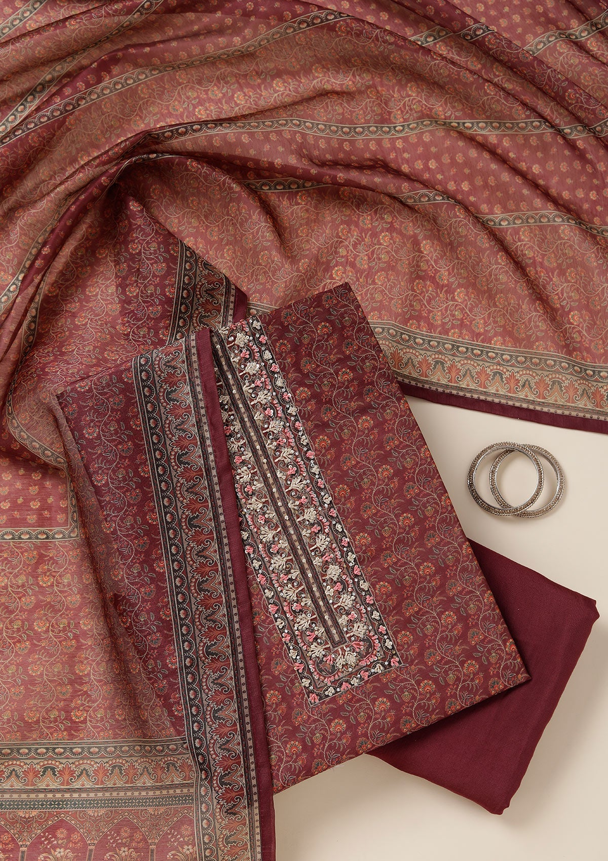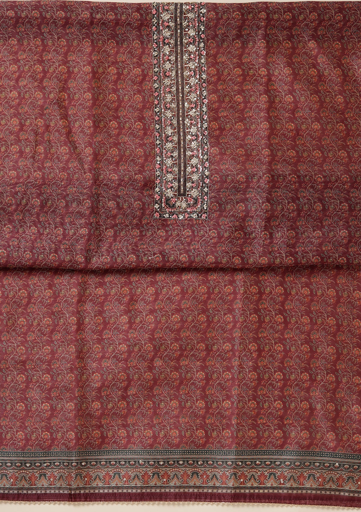 Wine Threadwork Chanderi Unstitched Salwar Suit