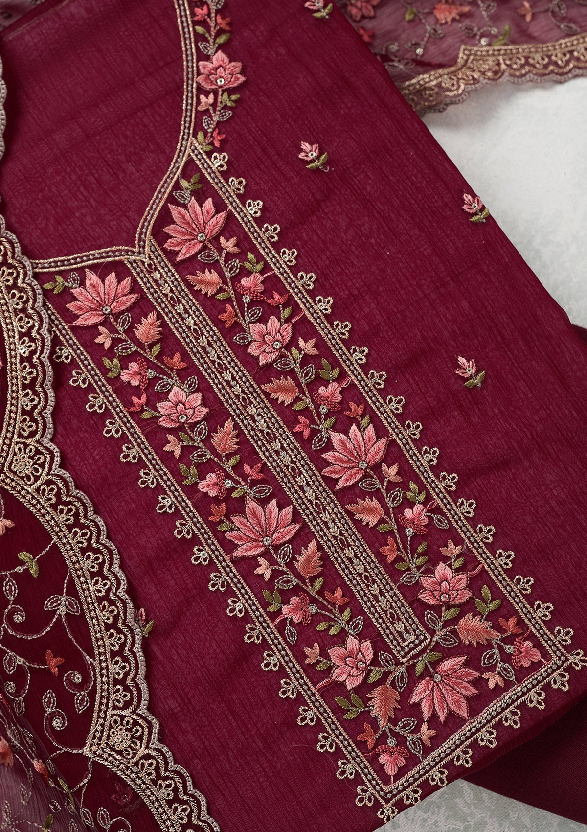 Wine Threadwork Tissue Unstitched Salwar Suit
