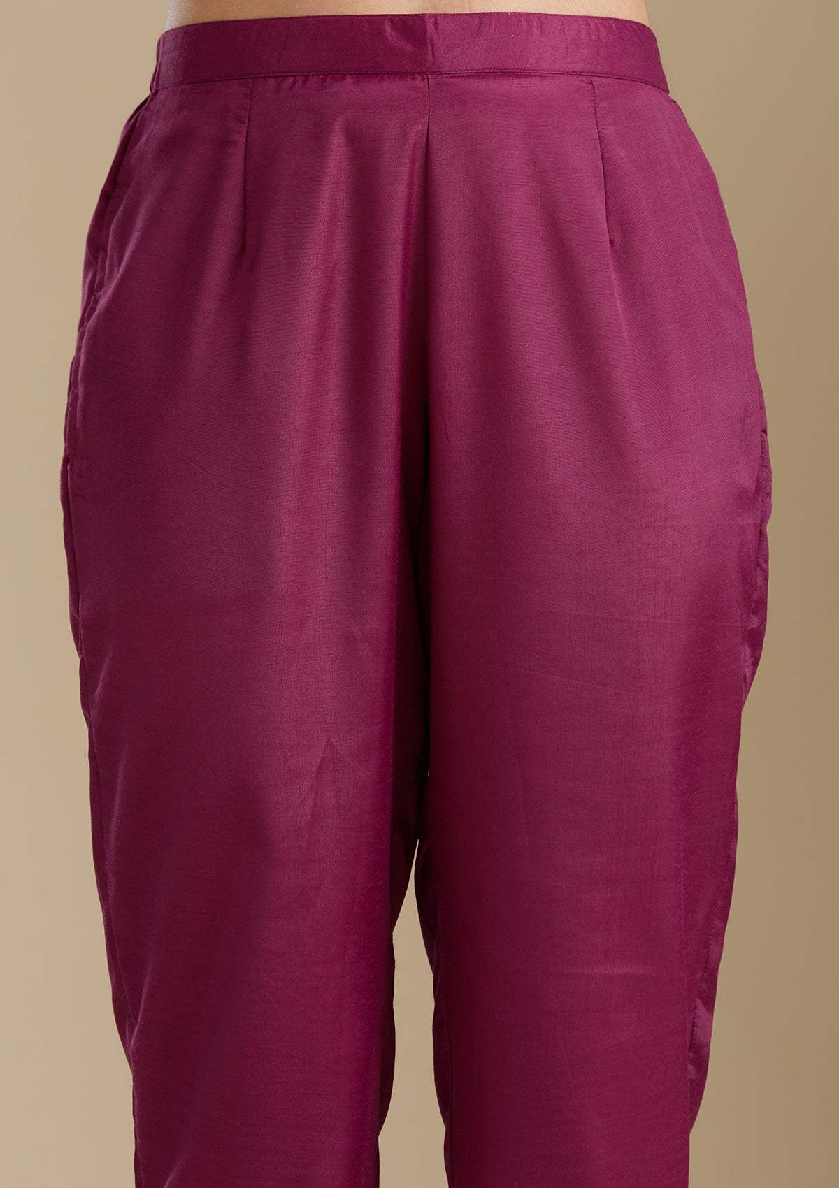 Wine Salwar Suit in Organza fabric. The Salwar Suit is embellished with Threadwork embroidery. Accompanied with a bottom and dupatta. Comes with the Koskii promise of premium quality.