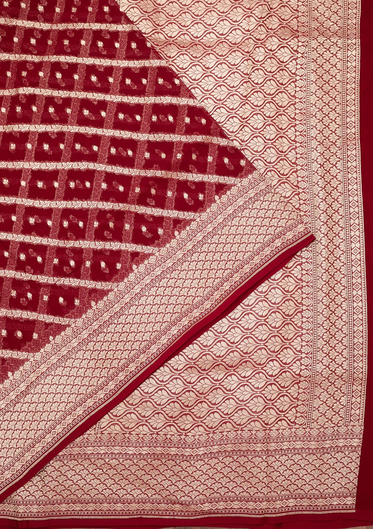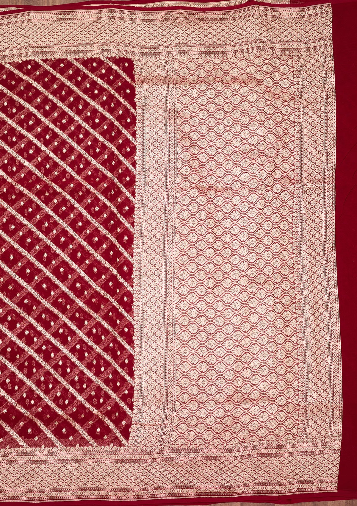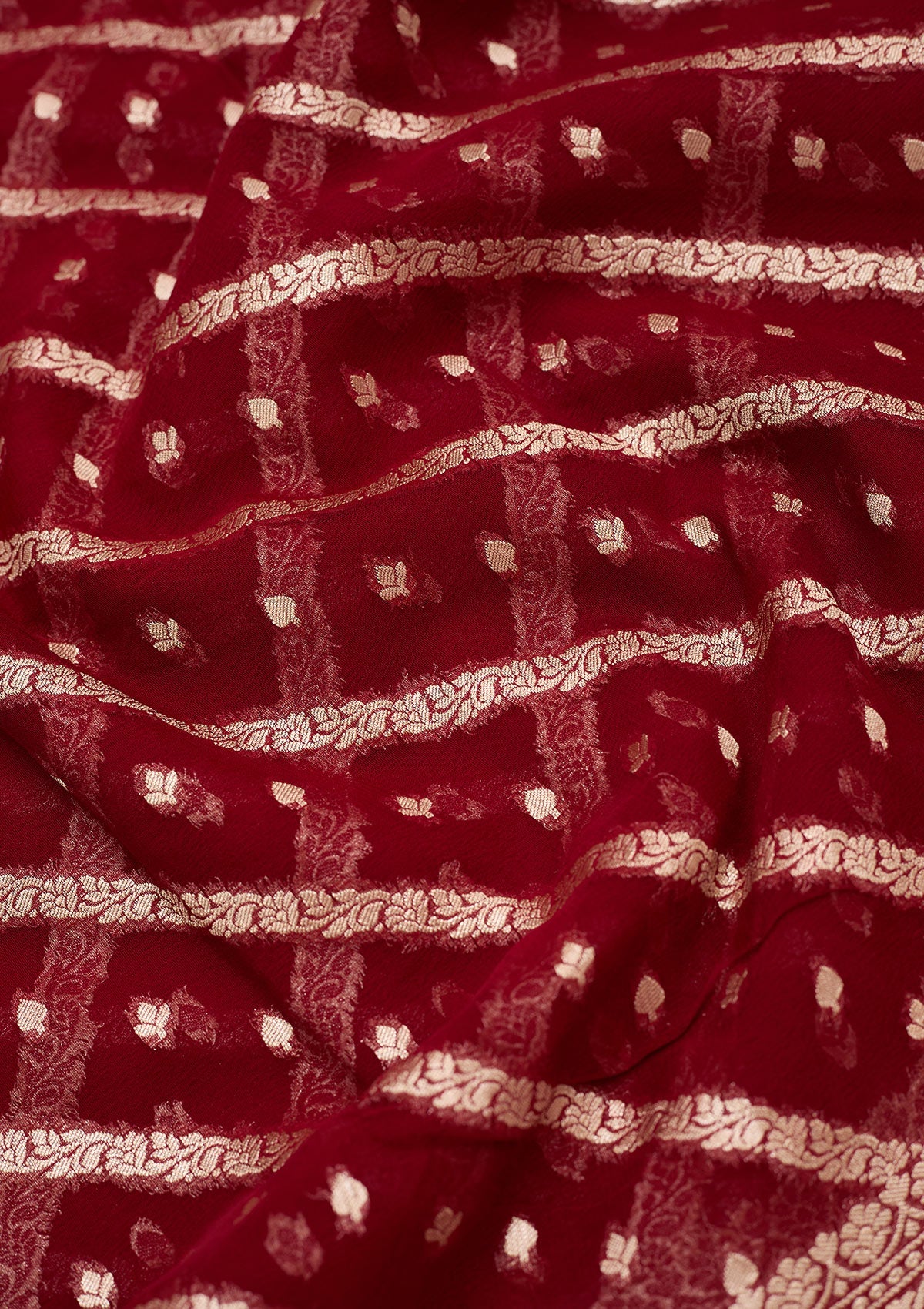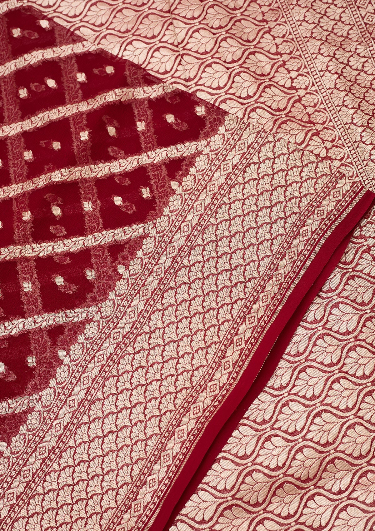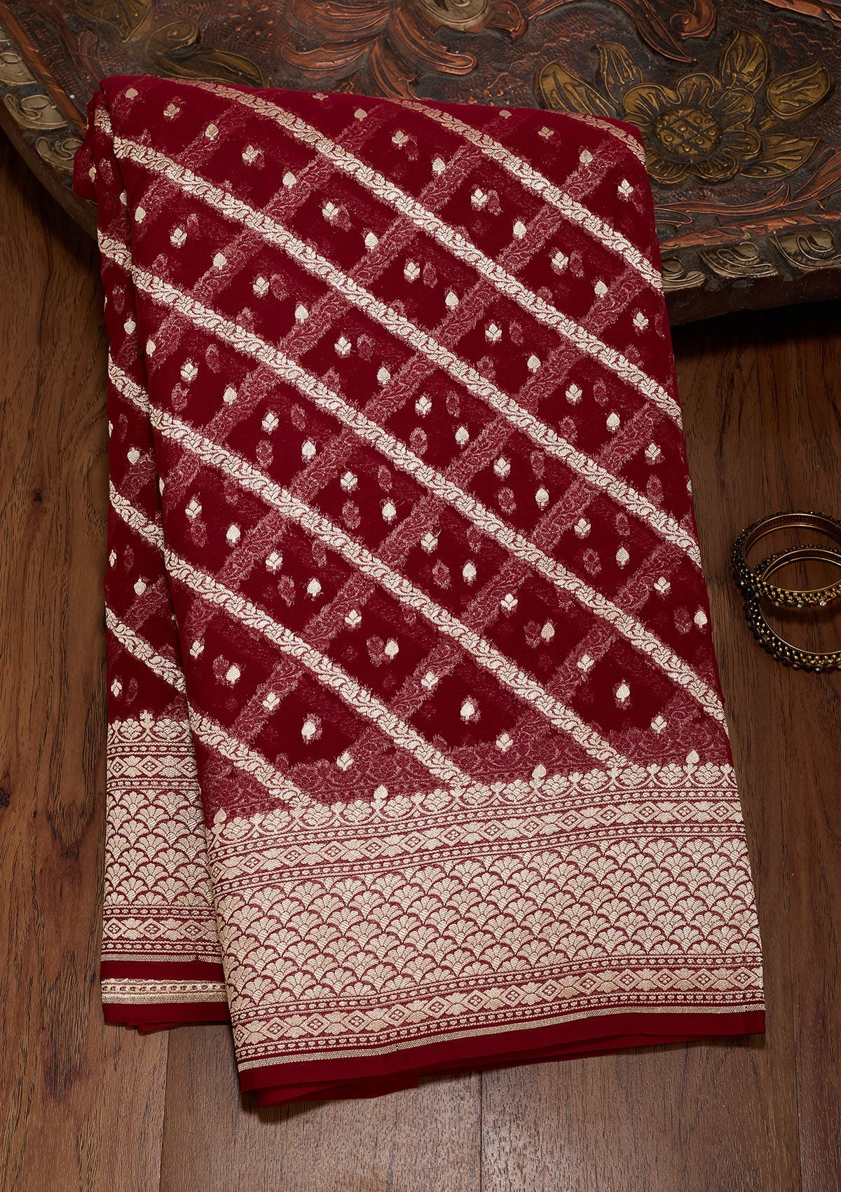 Wine Silk_Saree in Georgette fabric. The Silk_Saree is elevated with Zariwork embroidery. It comes with an Unstitched blouse. Comes with the Koskii promise of premium quality.