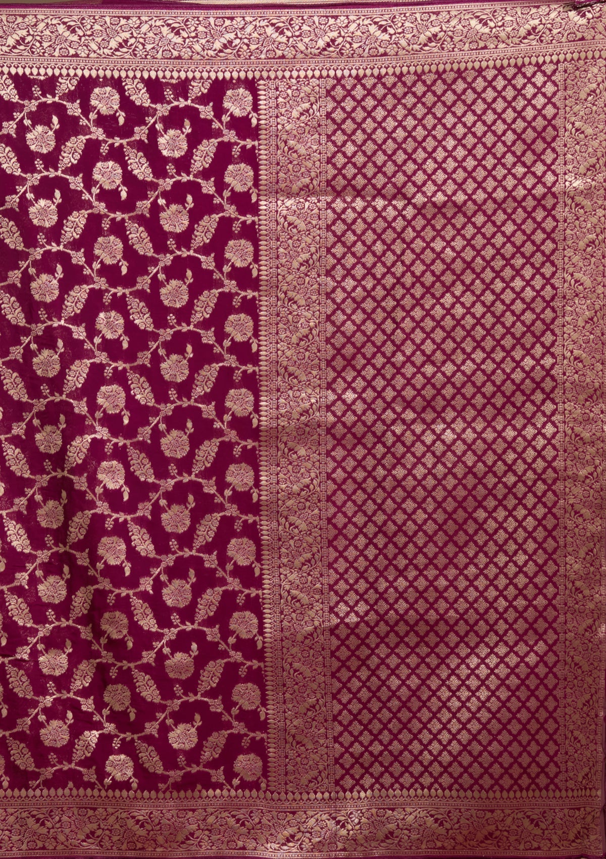 Wine Zariwork (Gold) Georgette Silk Saree