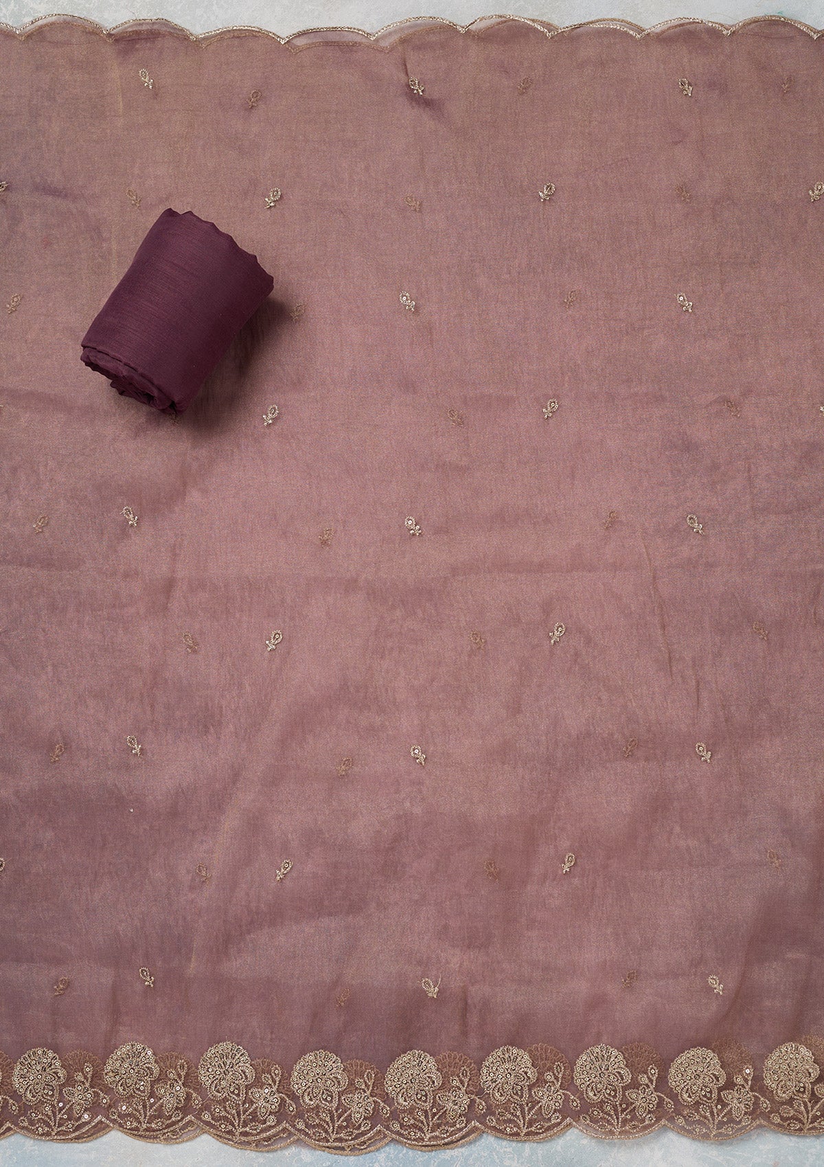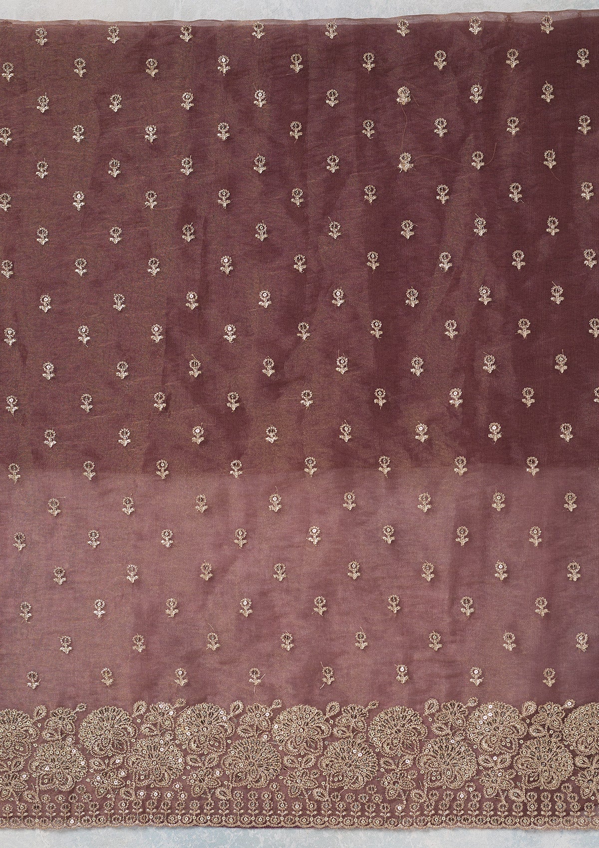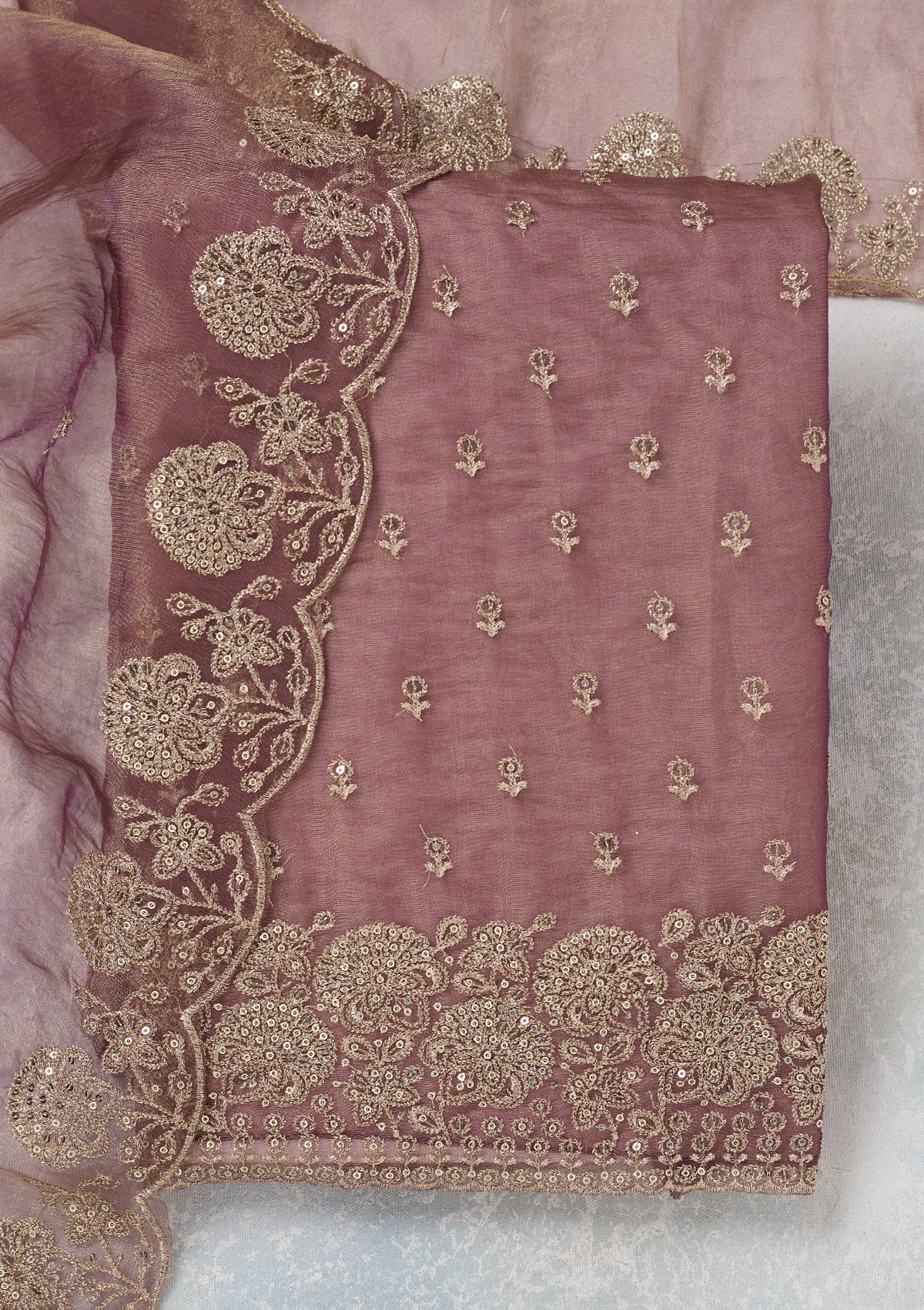Wine Zariwork (Gold) Tissue Unstitched Salwar Suit