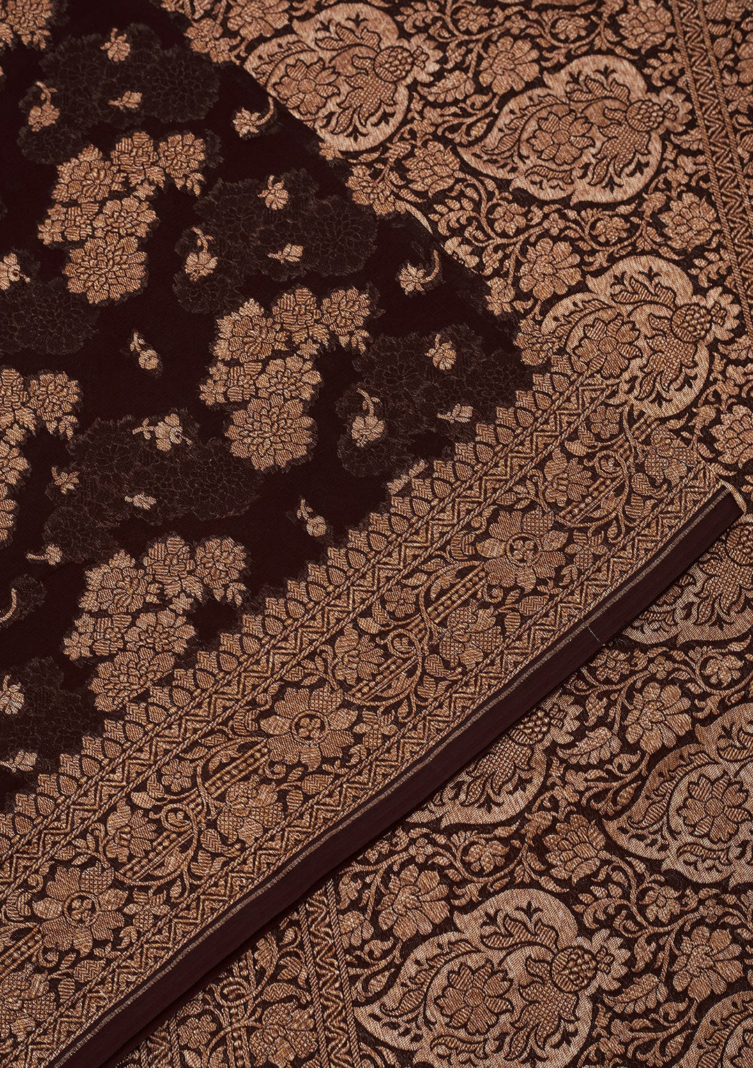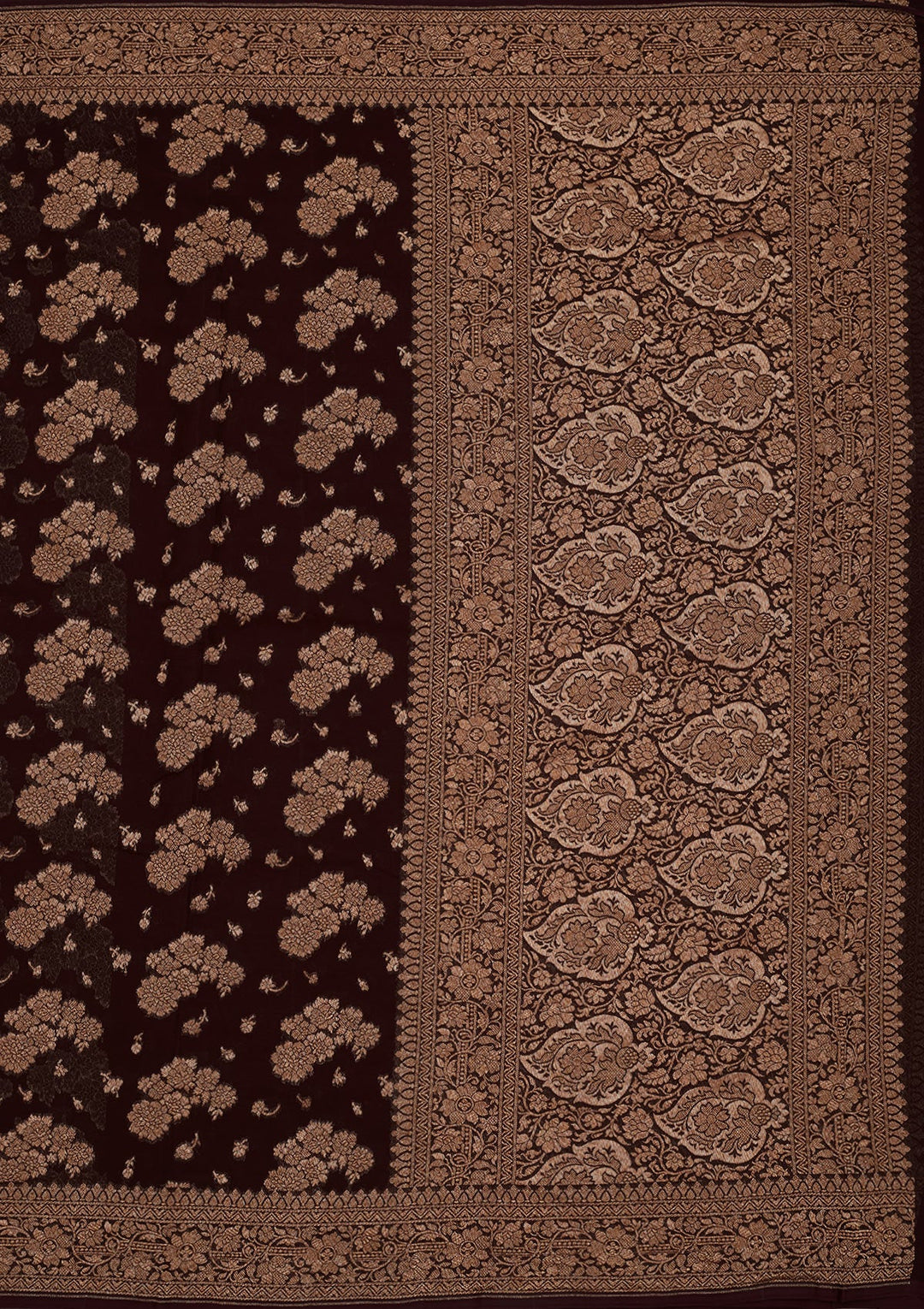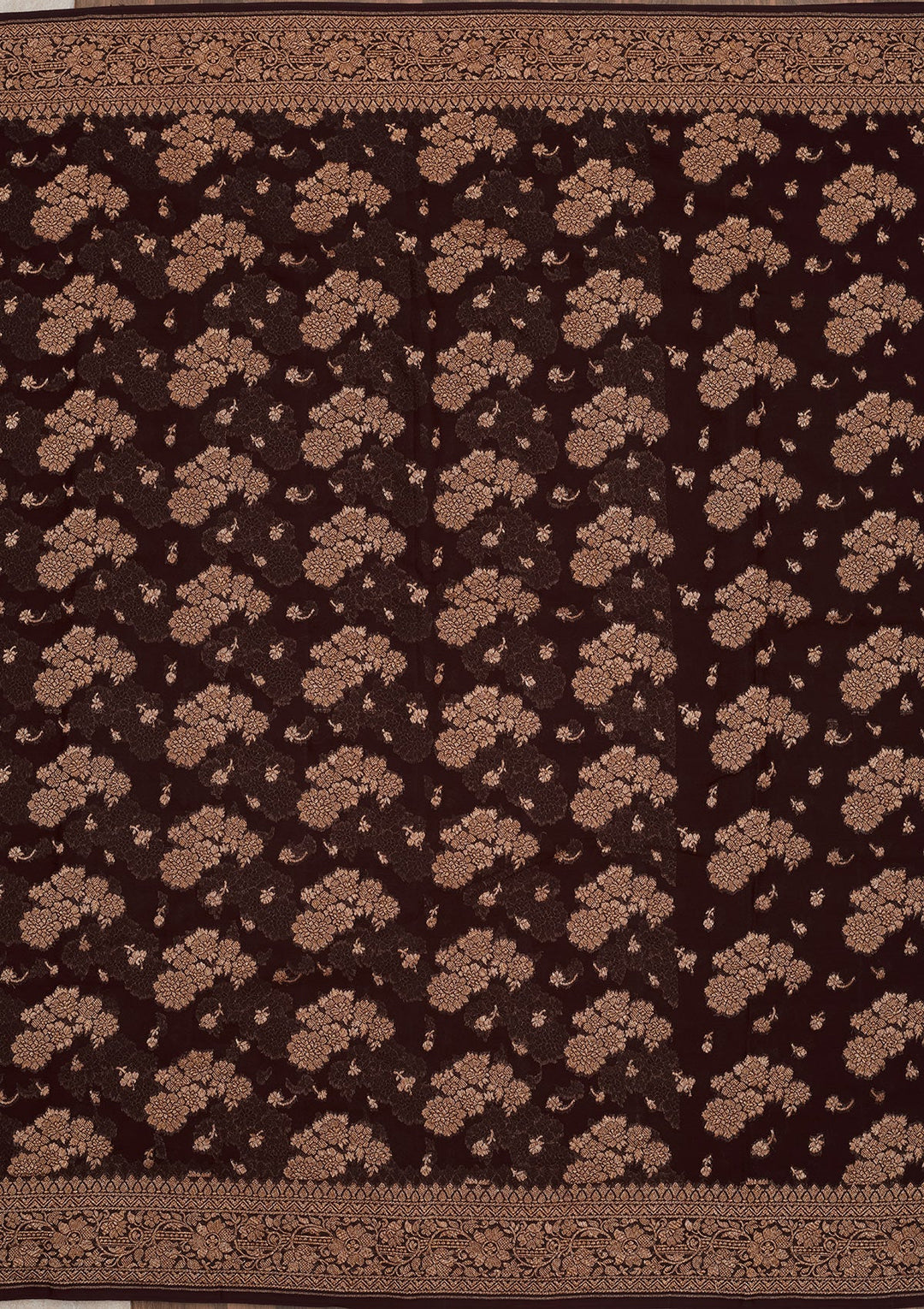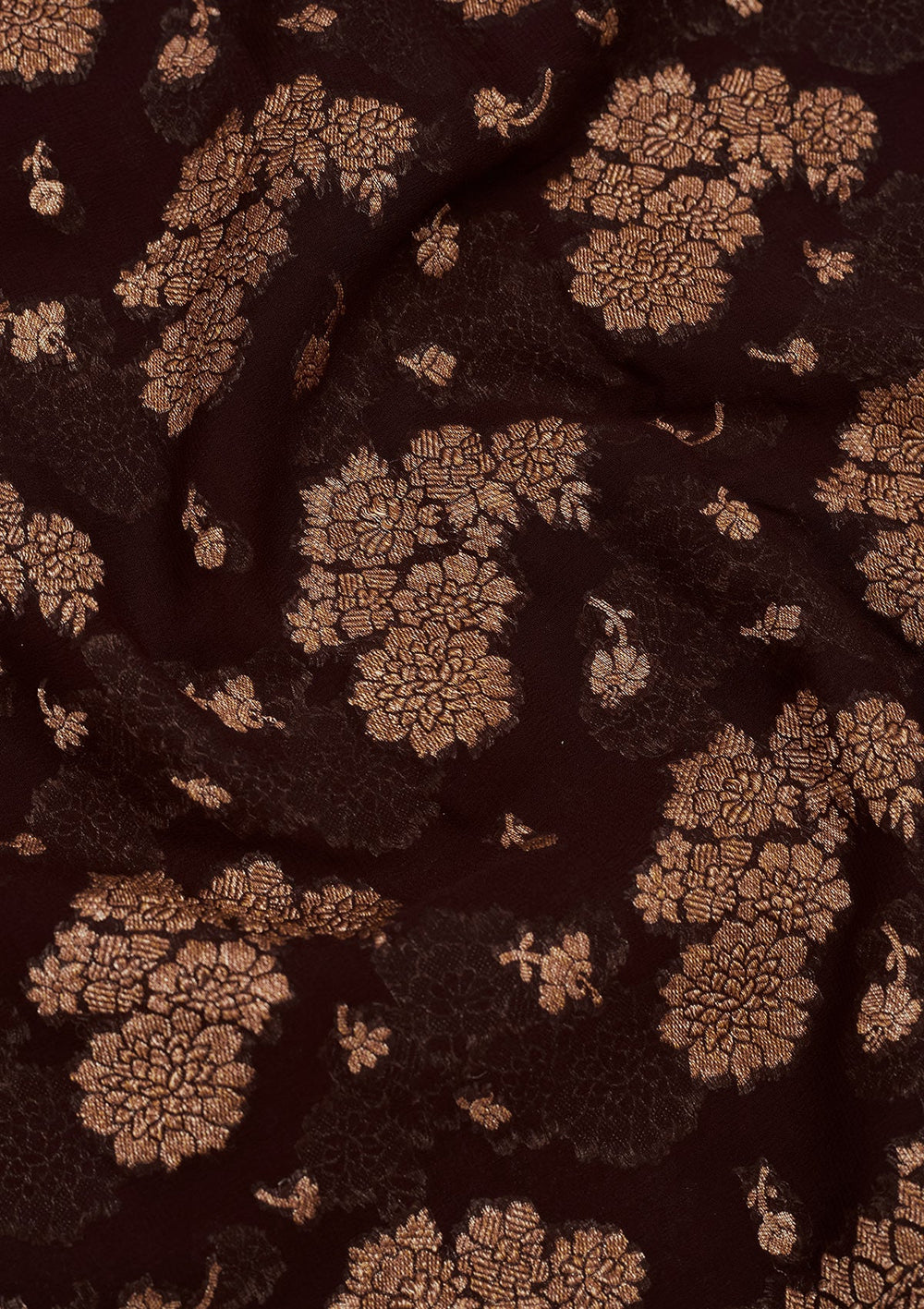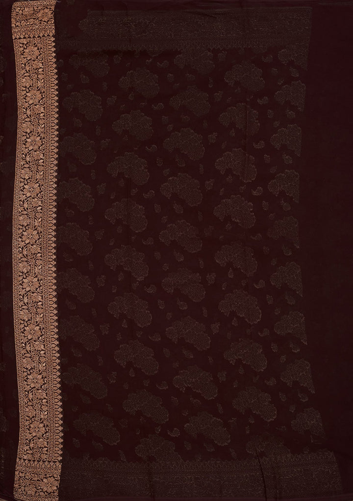 Wine Saree in Pure Silk fabric. The Saree is elevated with Zariwork embroidery. It comes with an Unstitched blouse. Comes with the Koskii promise of premium quality.