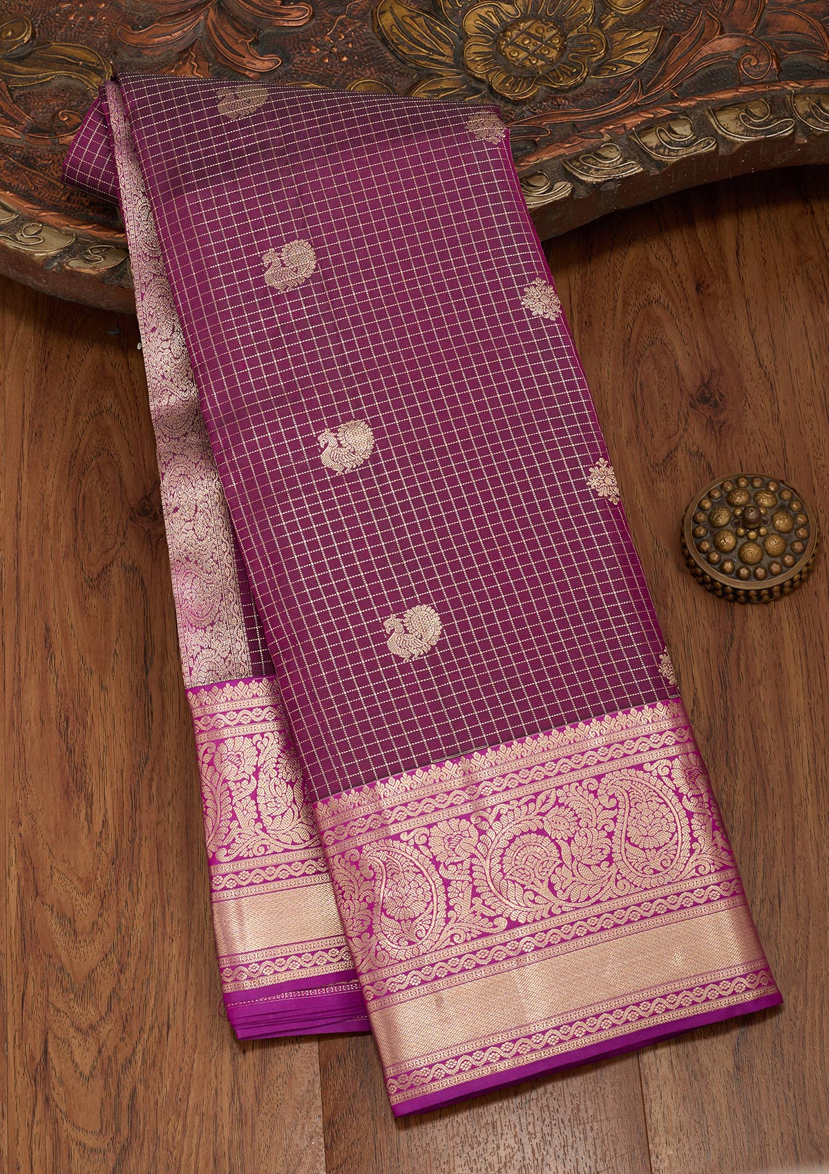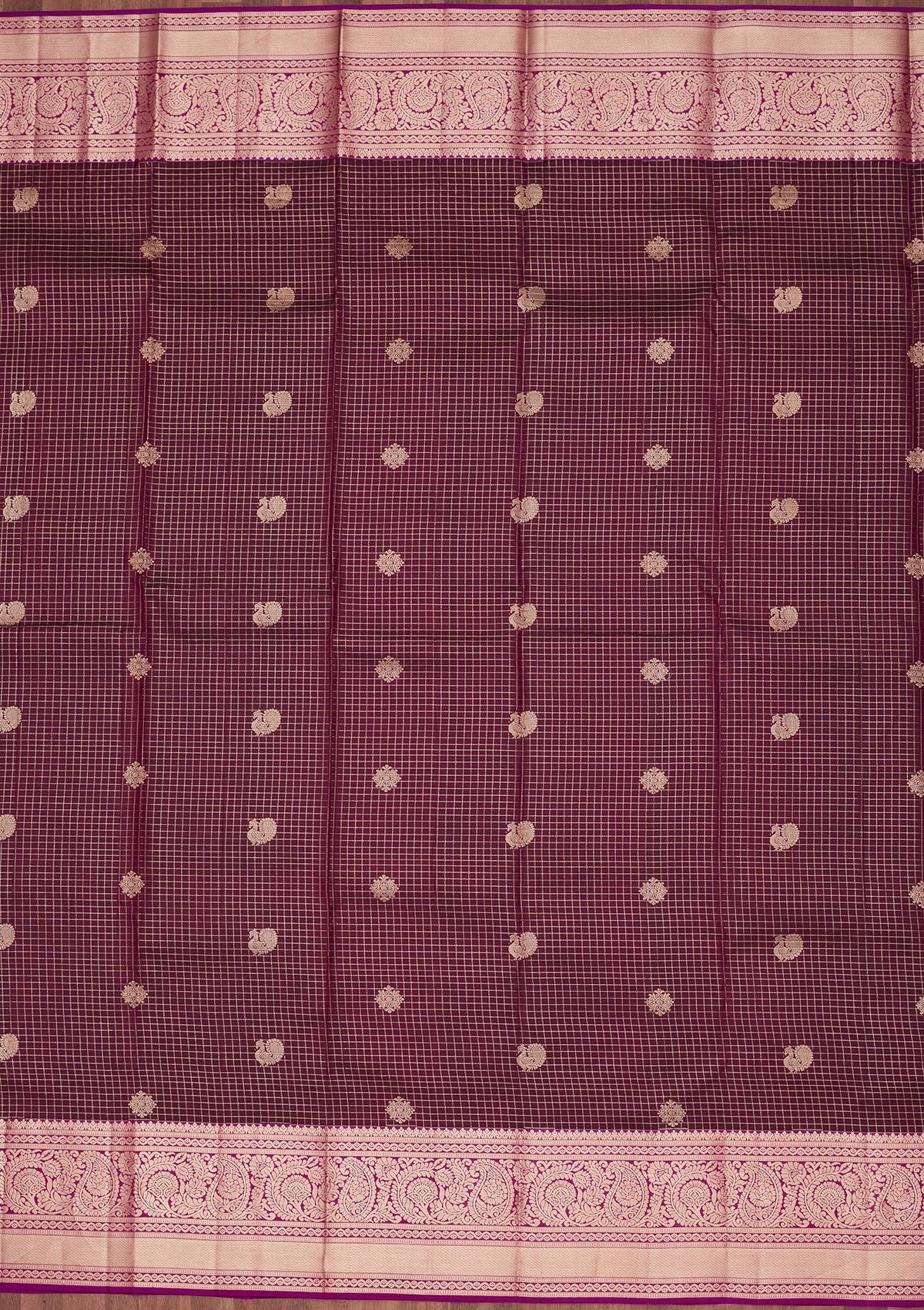 Wine Silk Saree in Pure Silk fabric. The Silk Saree is elevated with Zariwork embroidery. It comes with an Unstitched blouse. Comes with the Koskii promise of premium quality.