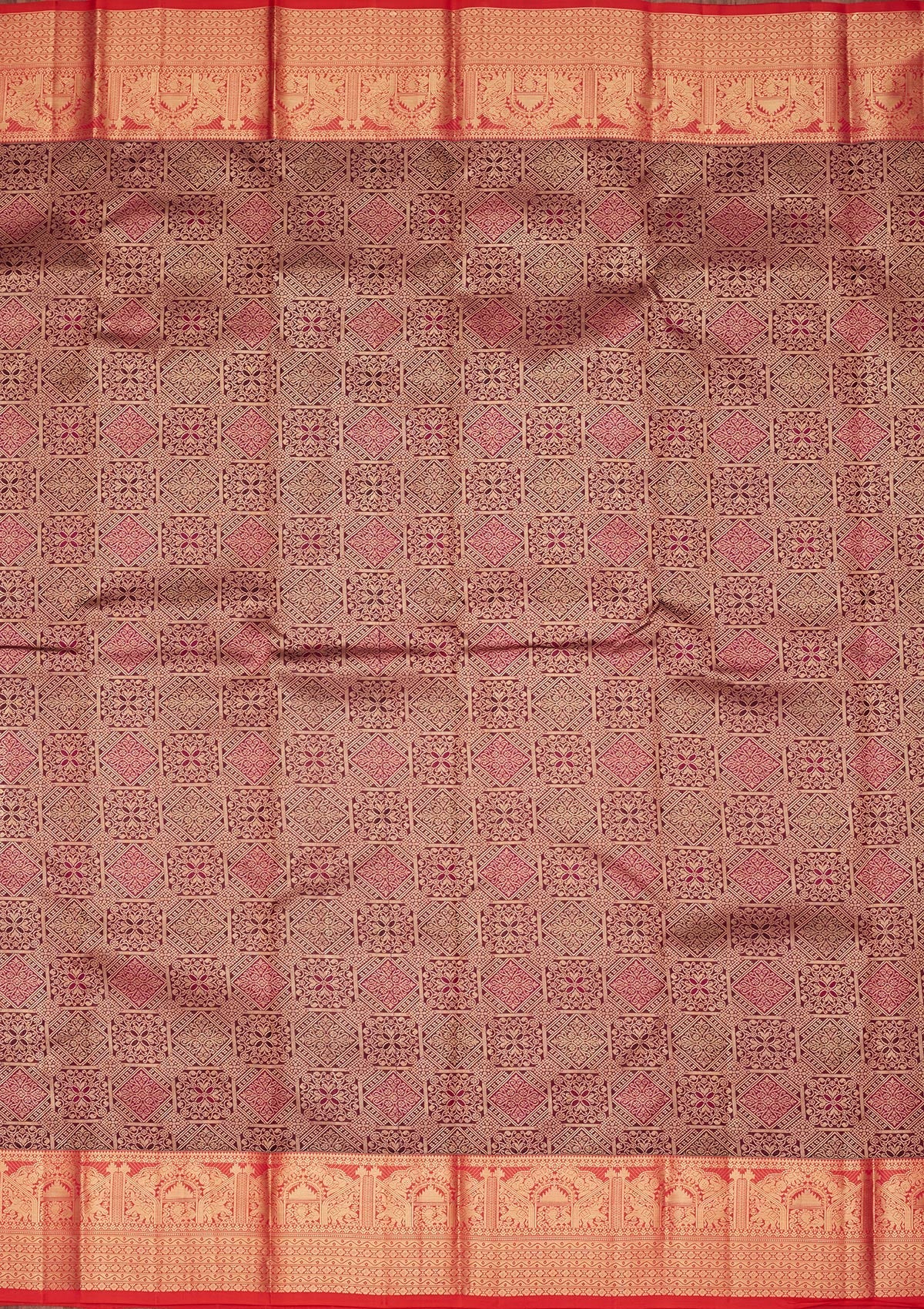 Wine Silk Saree in Pure Silk fabric. The Silk Saree is elevated with Zariwork embroidery. It comes with an Unstitched blouse. Comes with the Koskii promise of premium quality.