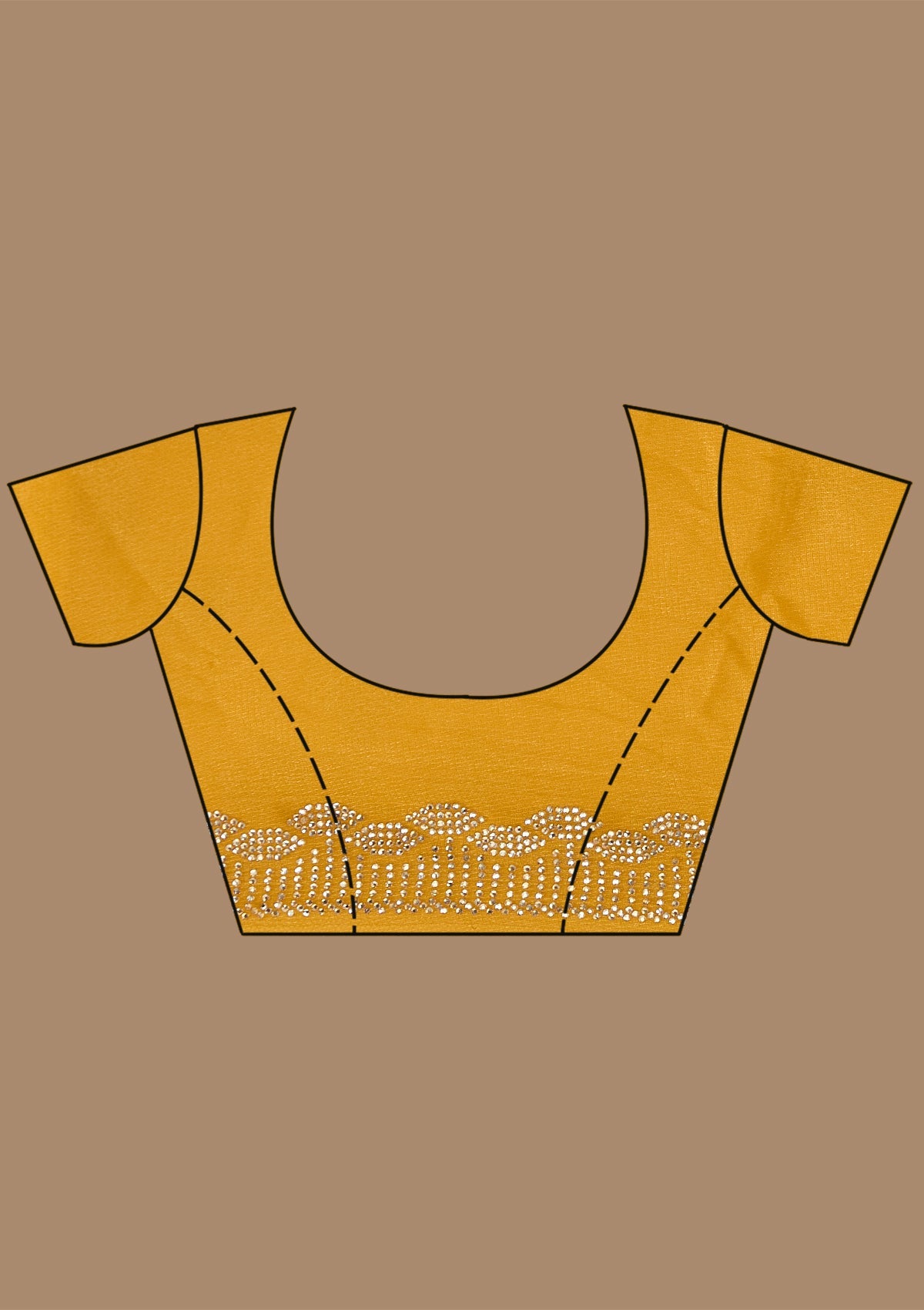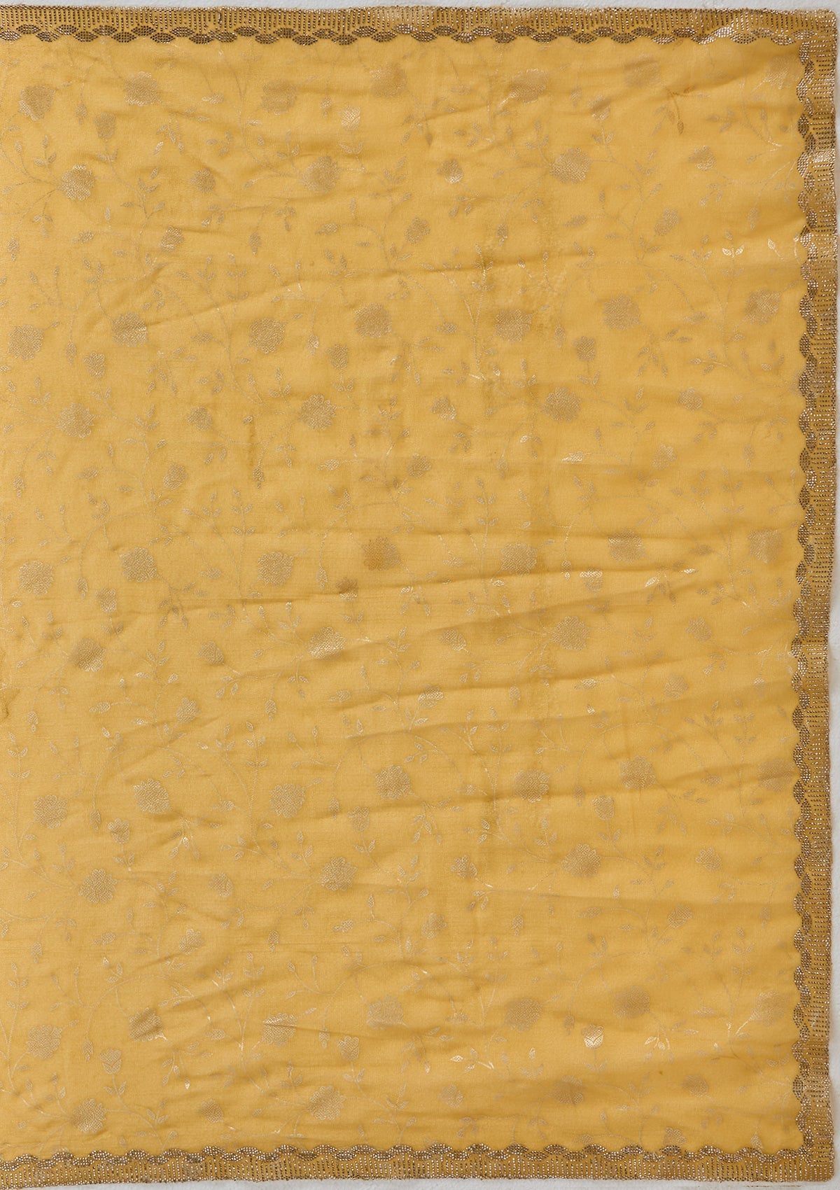Yellow Saree in Tissue fabric. The Saree is elevated with Badla embroidery. It comes with an Unstitched blouse. Comes with the Koskii promise of premium quality.