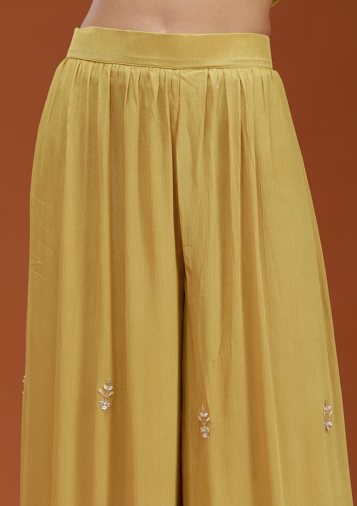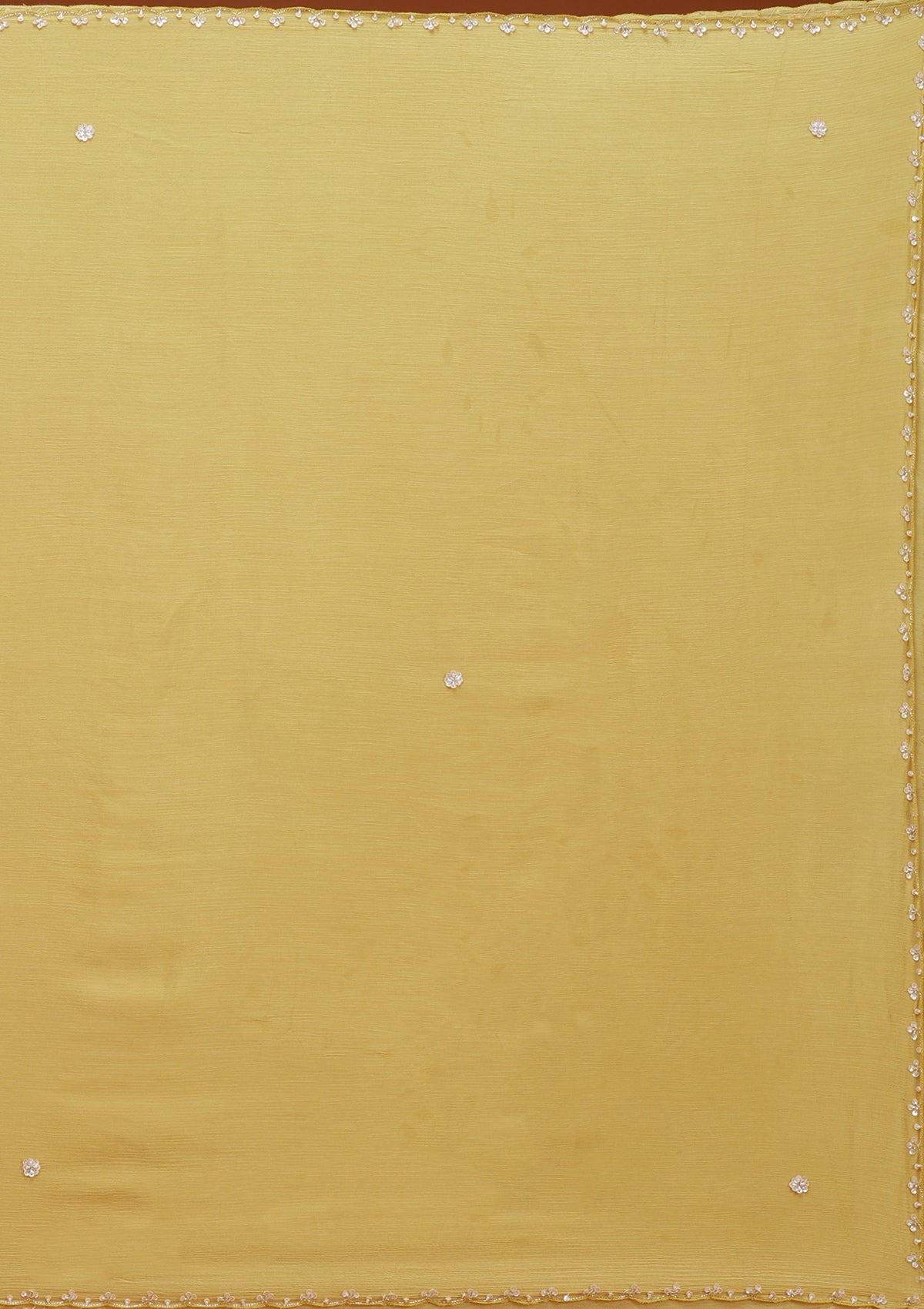 Yellow Salwar Suit in Crepe fabric. The Salwar Suit is embellished with Cutdana embroidery. Accompanied with a bottom and dupatta. Comes with the Koskii promise of premium quality.