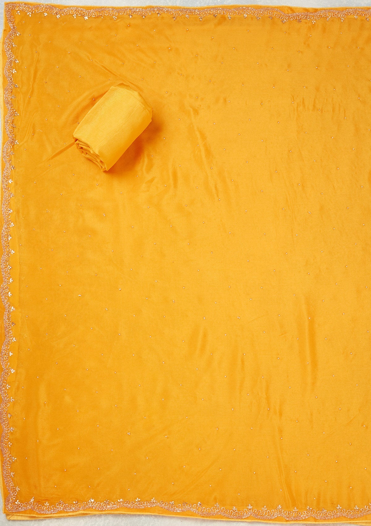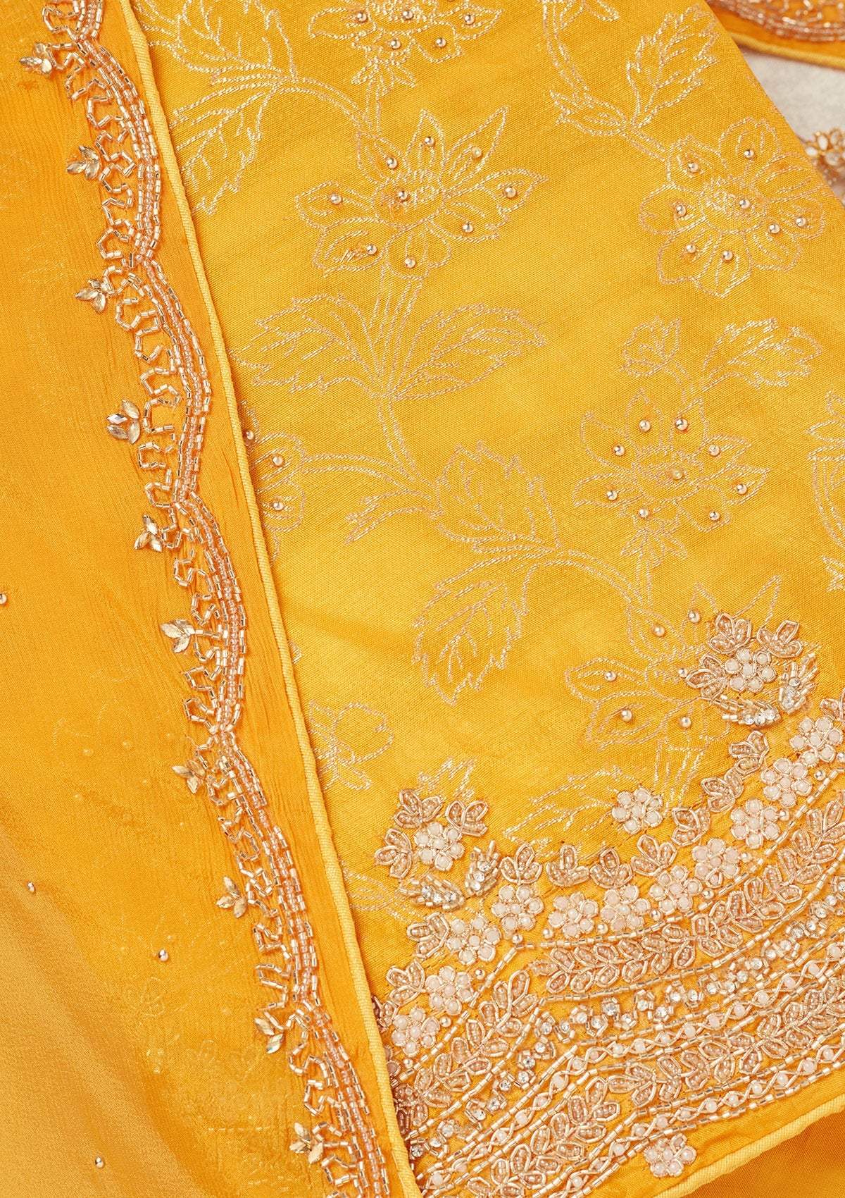 Yellow Pearlwork Dola Silk Unstitched Salwar Suit