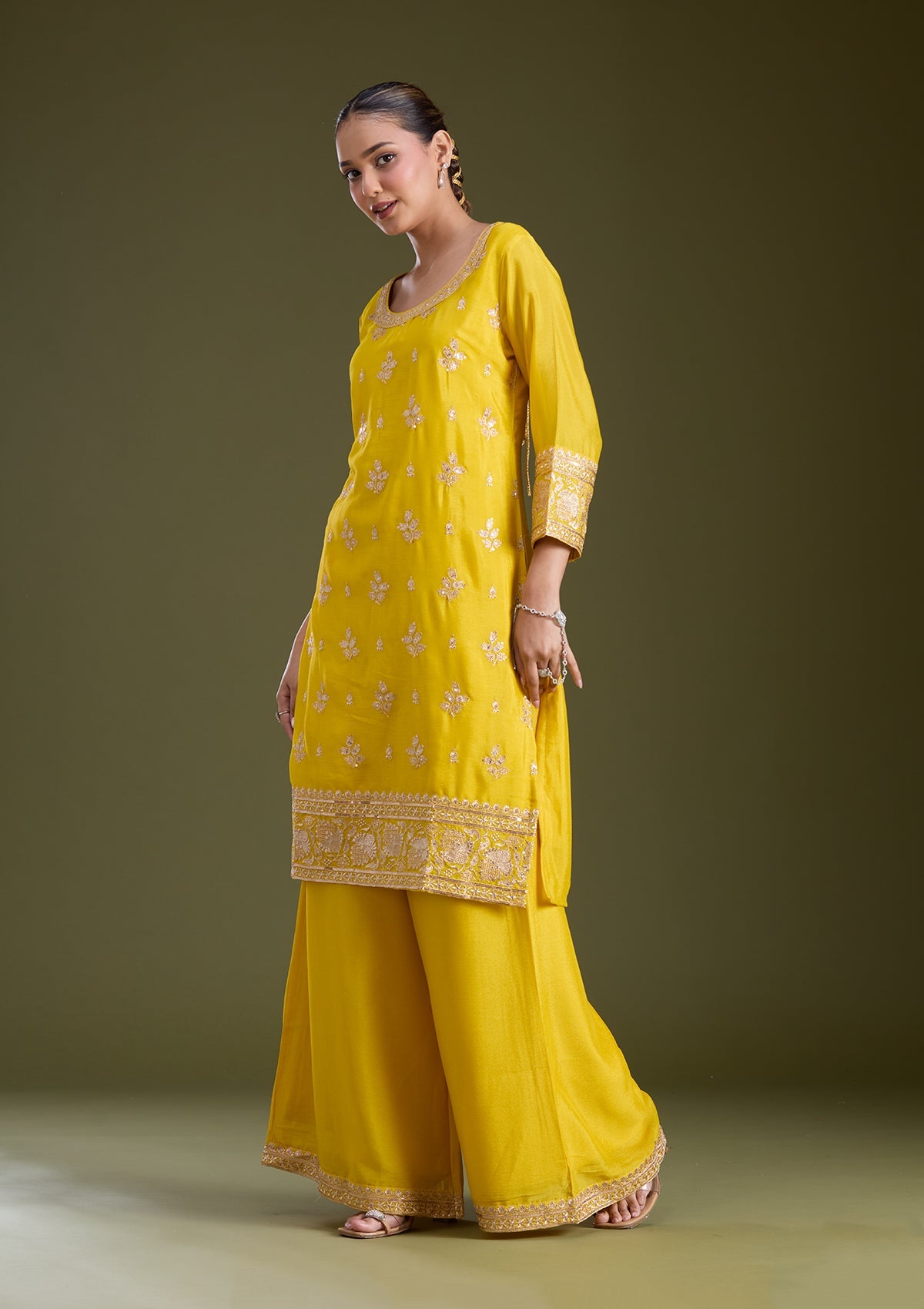 Yellow Sequins Soft Raw Silk Readymade Salwar Suit