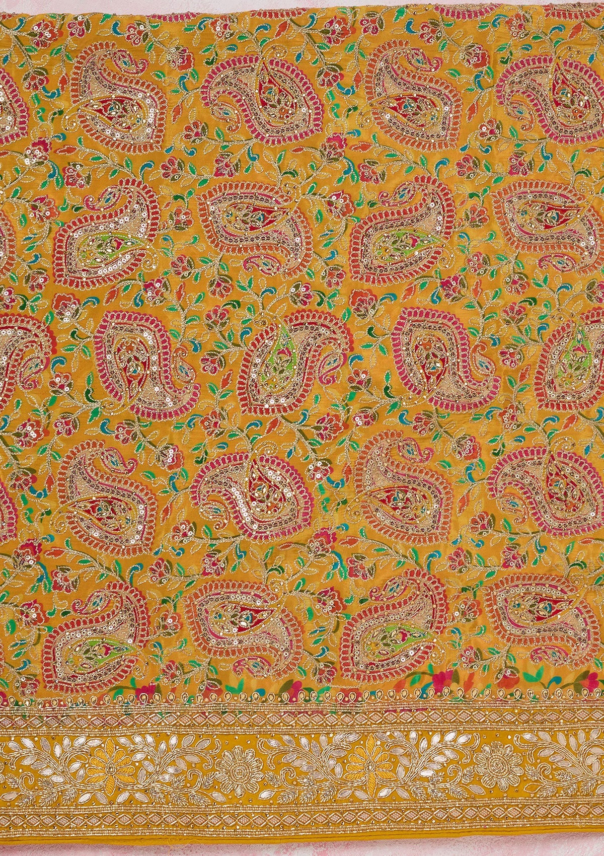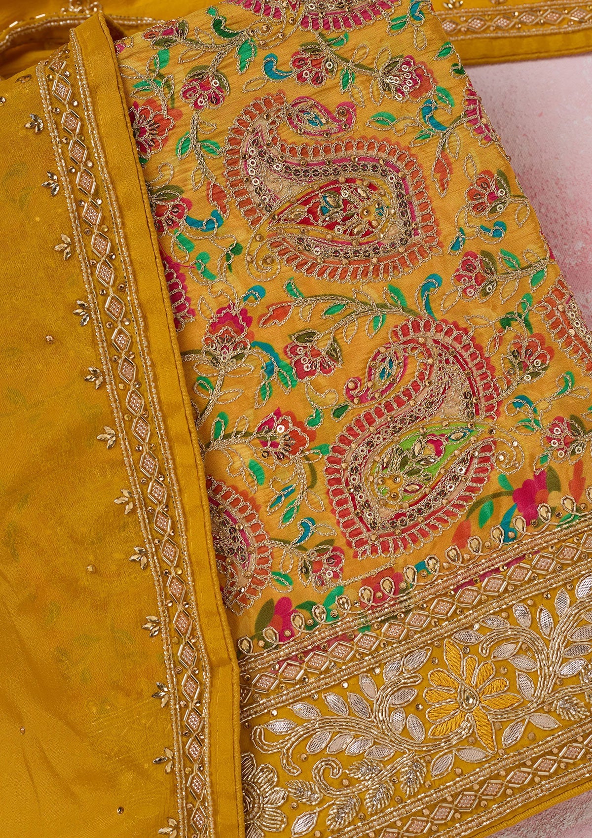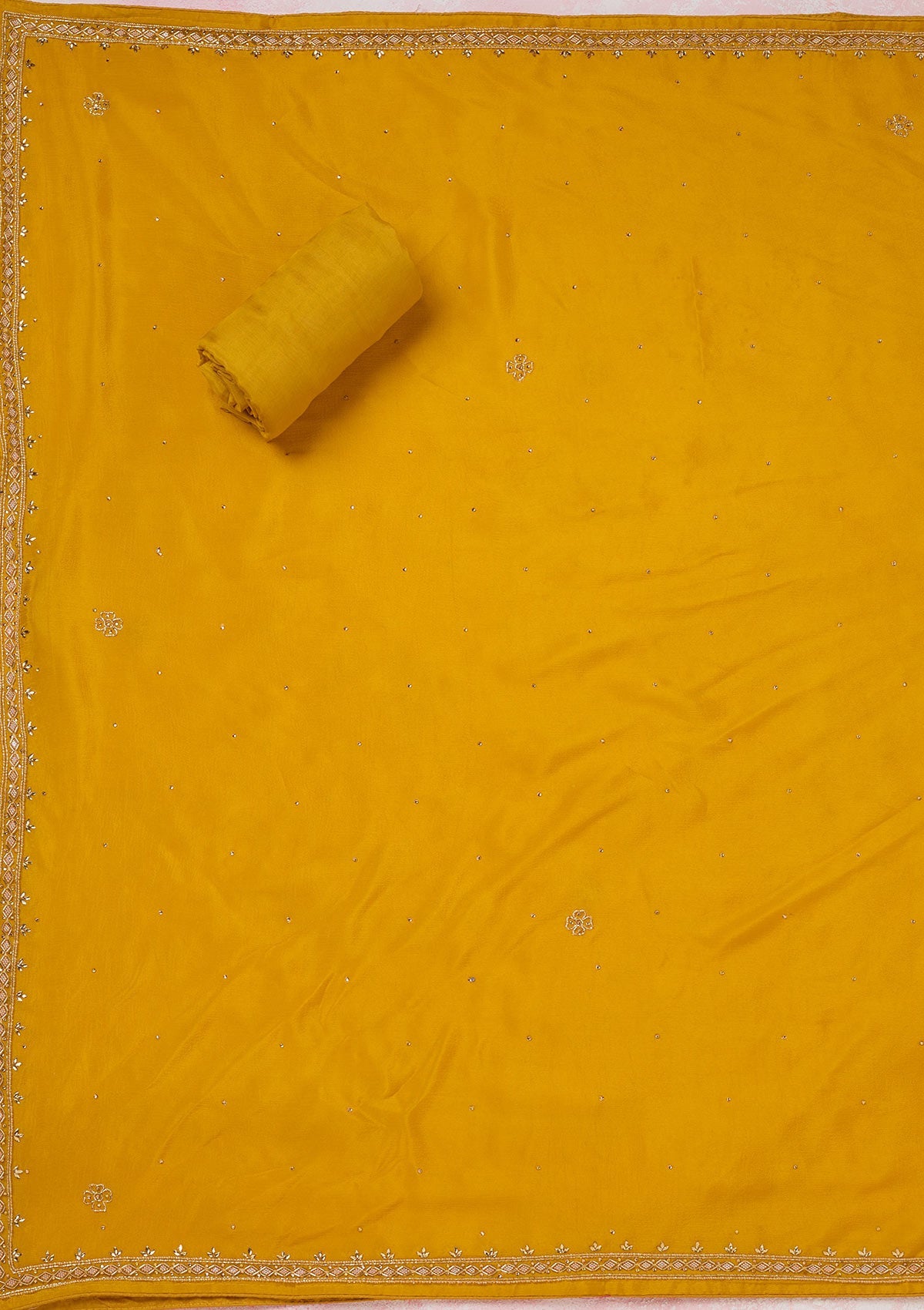 Yellow Stonework Semi Crepe Unstitched Salwar Suit